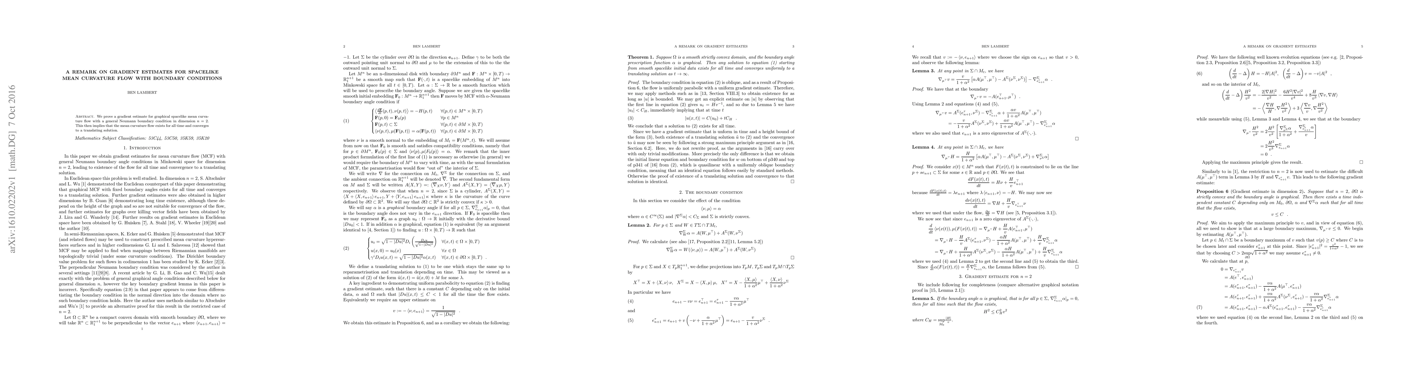 Summary: The paper proves a gradient estimate for spacelike mean curvature flow with Neumann boundary conditions in two dimensions, ensuring the flow exists indefinitely and converges to a translating solution.