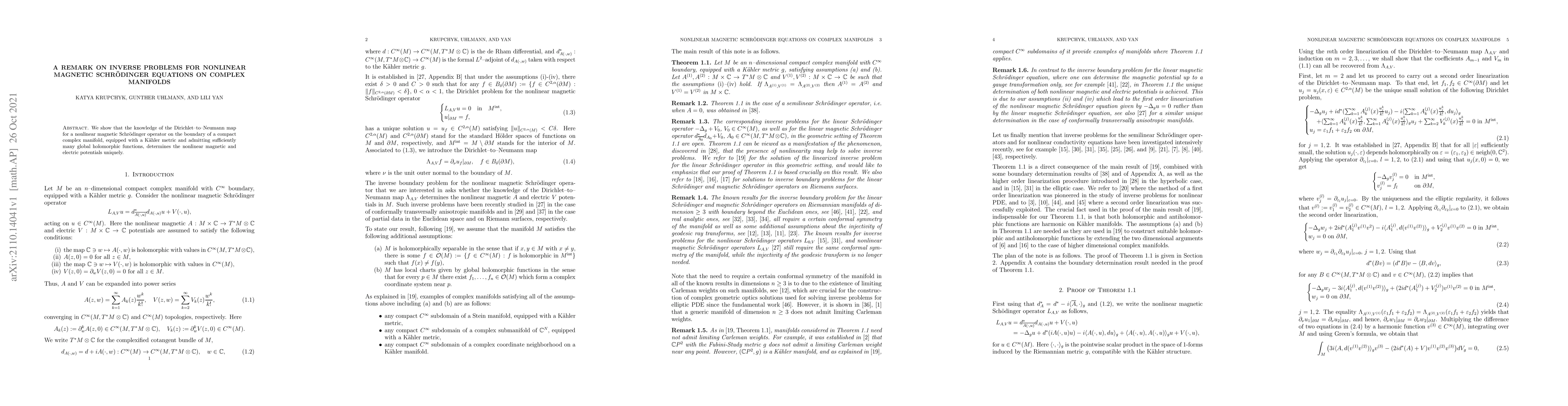 A study on nonlinear magnetic Schr"odinger equations shows that knowing a map of boundary conditions determines the potentials uniquely, with implications for solving inverse problems in complex manifolds.