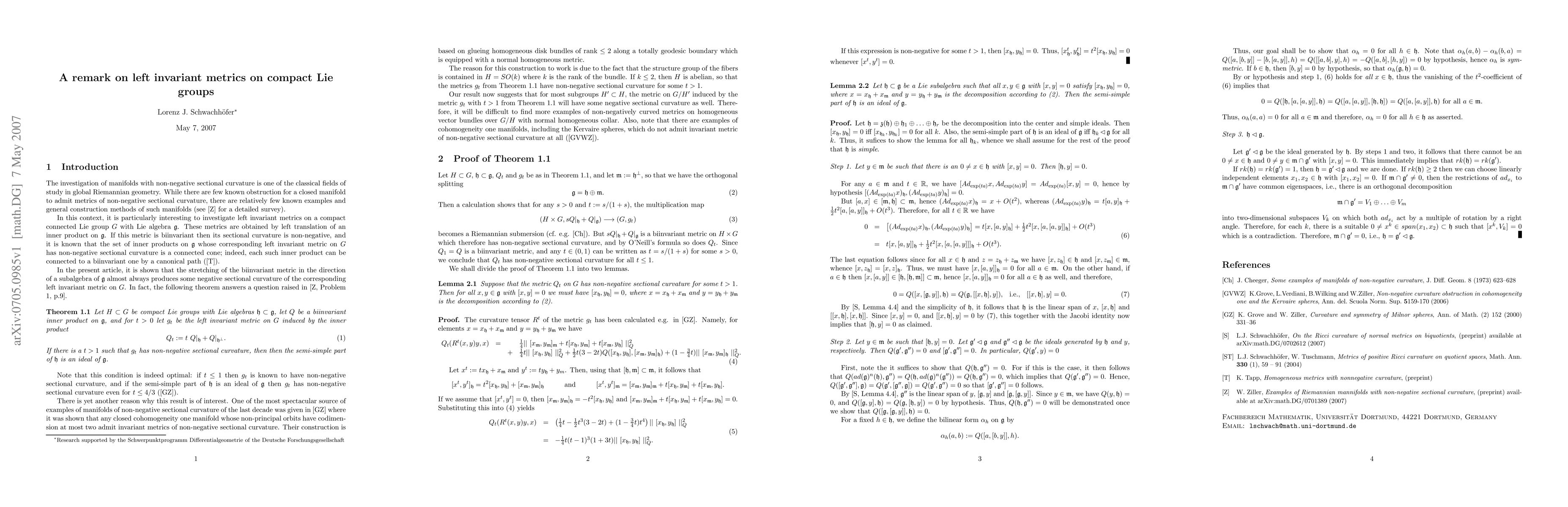 A left invariant metric on a compact Lie group can have negative sectional curvature unless its semi-simple part is an ideal of the group's Lie algebra.