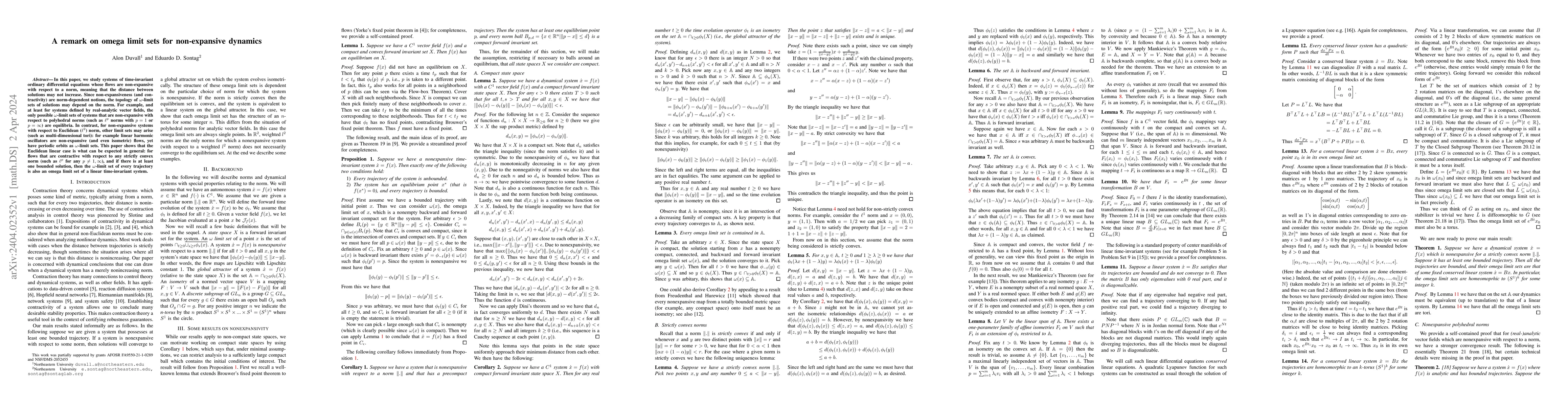 This paper examines non-expansive dynamics in ordinary differential equations, noting that $\omega$-limit sets' topology varies with the norm. Specifically, it finds that non-expansive systems under $\ell^p$ norms with $p=1$ or $p=\infty$ yield only equilibrium $\omega$-limit sets, while $\ell^2$ norms can lead to more complex sets like tori; it concludes that general contractive flows under strictly convex norms result in $\omega$-limit sets analogous to those of linear time-invariant systems.