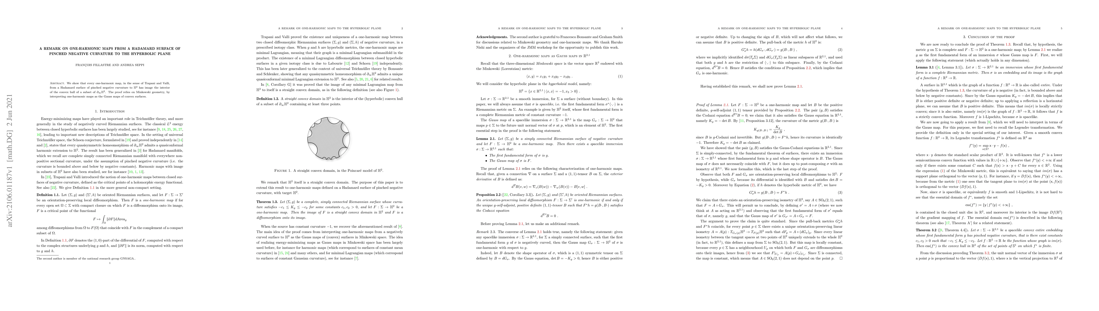 We show that every one-harmonic map, in the sense of Trapani and Valli, from a Hadamard surface of pinched negative curvature to $\mathbb{H}^2$ has image the interior of the convex hull of a subset of $\partial_\infty\mathbb{H}^2$. The proof relies on Minkowski geometry, by interpreting one-harmonic maps as the Gauss maps of convex surfaces.