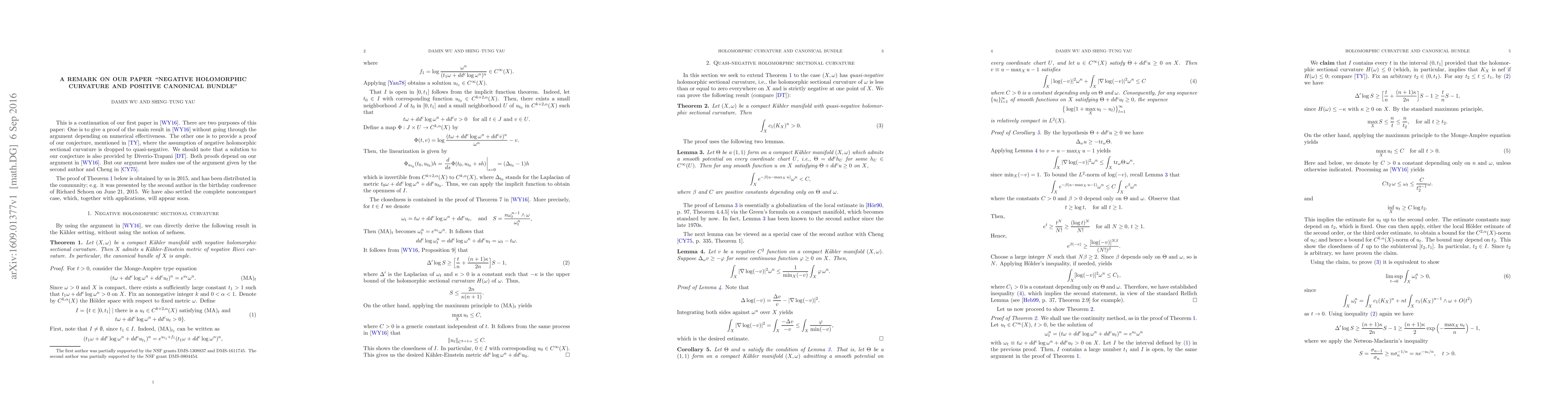 This paper proves a main result in a previous paper without using numerical effectiveness, and also resolves a conjecture by dropping the assumption of negative holomorphic sectional curvature to quasi-negative.
