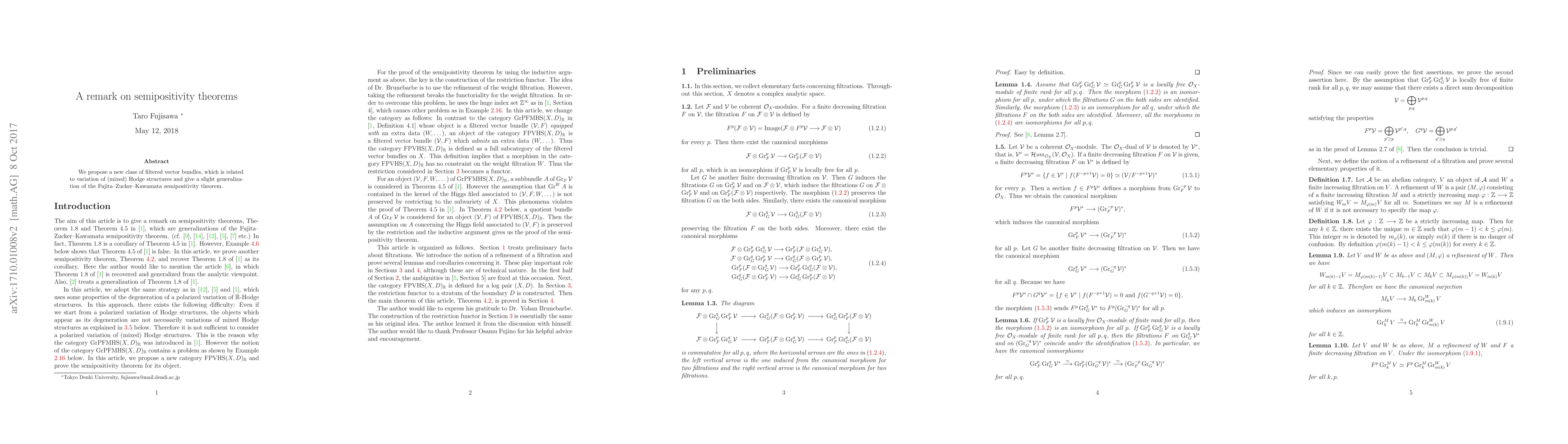 The paper introduces a novel class of filtered vector bundles connected to mixed Hodge structures, slightly generalizing the Fujita-Zucker-Kawamata semipositivity theorem in algebraic geometry. This advancement provides refined criteria for semipositivity in the context of these bundles.