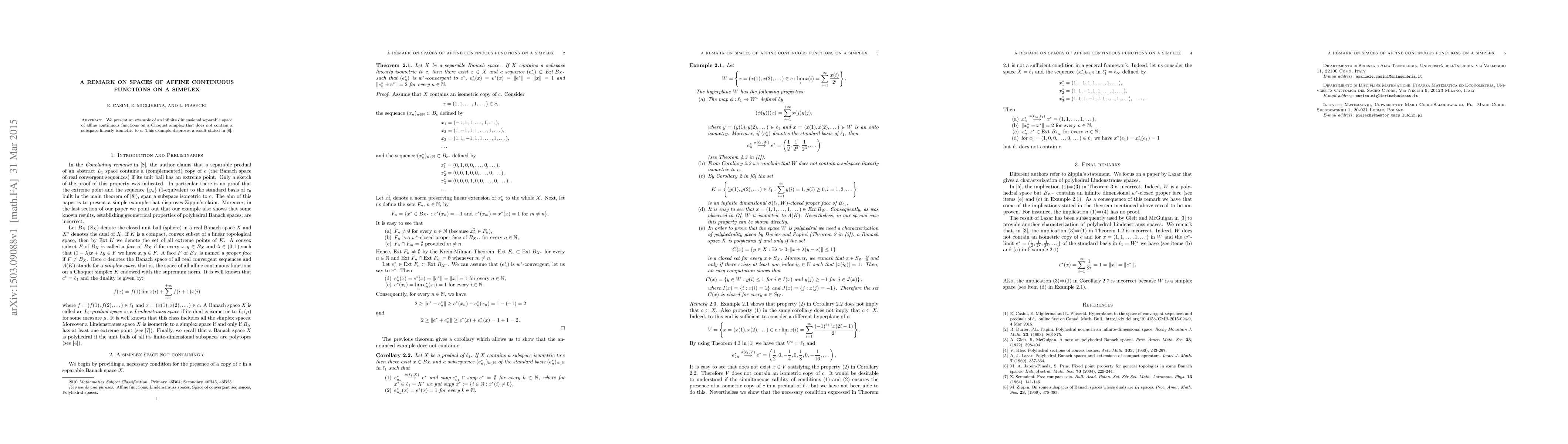 Researchers have found an infinite-dimensional space of affine continuous functions on a Choquet simplex that is not linearly isomorphic to the space $c$, disproving a previous result.