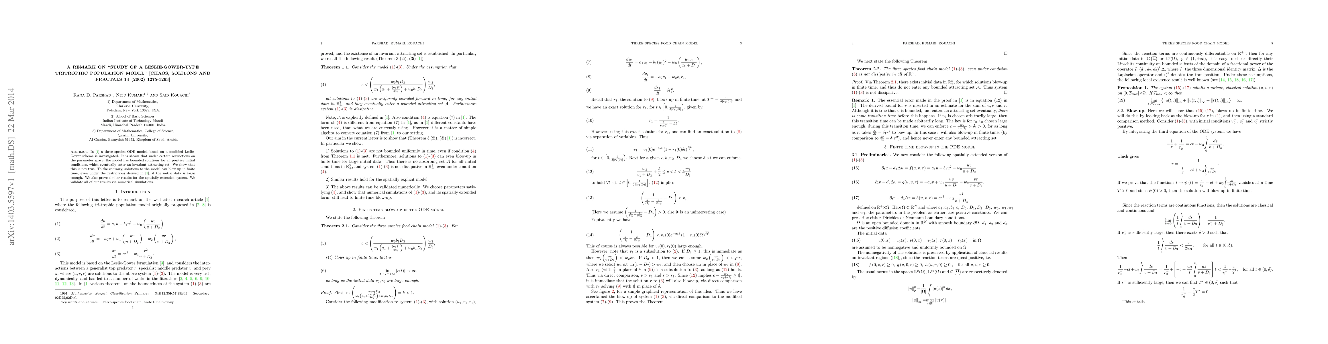 In [Aziz-Alaoui, 2002] a three species ODE model, based on a modified Leslie-Gower scheme is investigated. It is shown that under certain restrictions on the parameter space, the model has bounded solutions for all positive initial conditions, which eventually enter an invariant attracting set. We show that this is not true. To the contrary, solutions to the model can blow up in finite time, even under the restrictions derived in [Aziz-Alaoui, 2002], if the initial data is large enough. We also prove similar results for the spatially extended system. We validate all of our results via numerical simulations.
