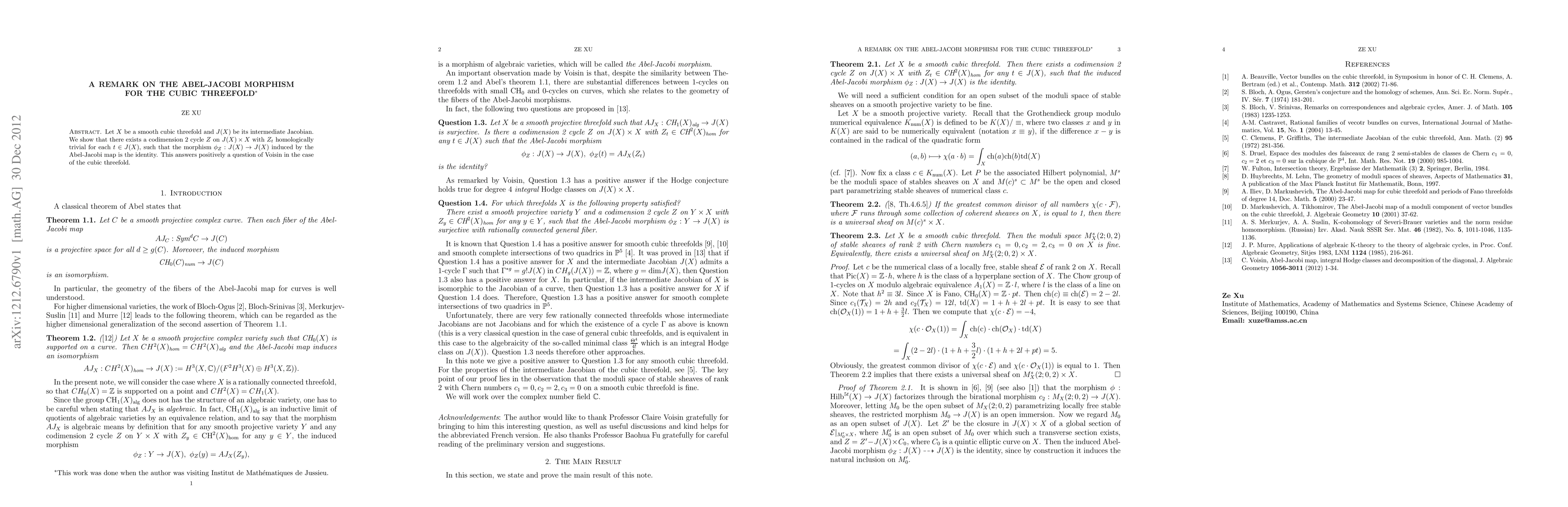 This paper demonstrates the existence of a codimension 2 cycle $Z$ on the product of the intermediate Jacobian $J(X)$ of a smooth cubic threefold $X$ and $X$ itself, showing that the corresponding Abel-Jacobi morphism $\phi_{Z}$ is the identity, thus resolving a question posed by Voisin for cubic threefolds.