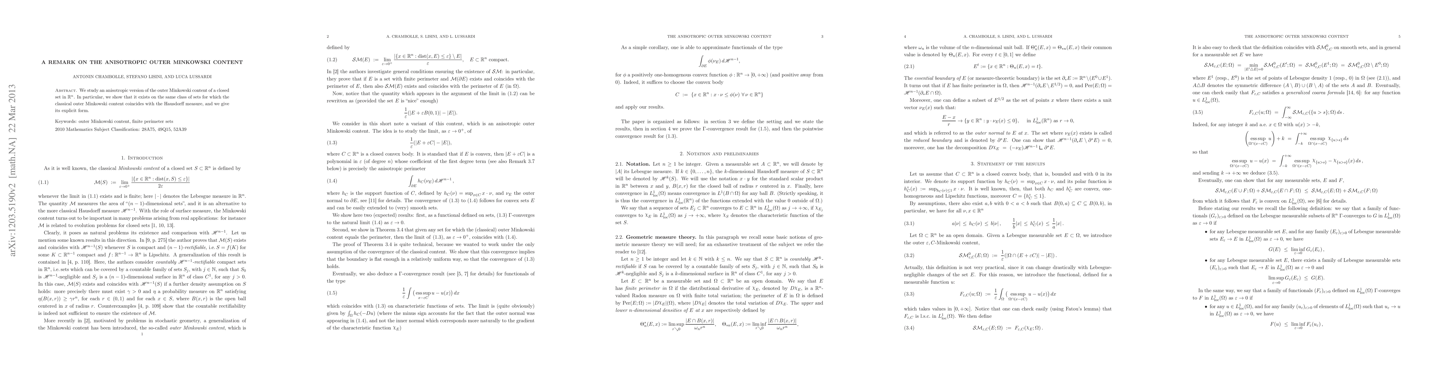 We study an anisotropic version of the outer Minkowski content of a closed set in Rn. In particular, we show that it exists on the same class of sets for which the classical outer Minkowski content coincides with the Hausdorff measure, and we give its explicit form.