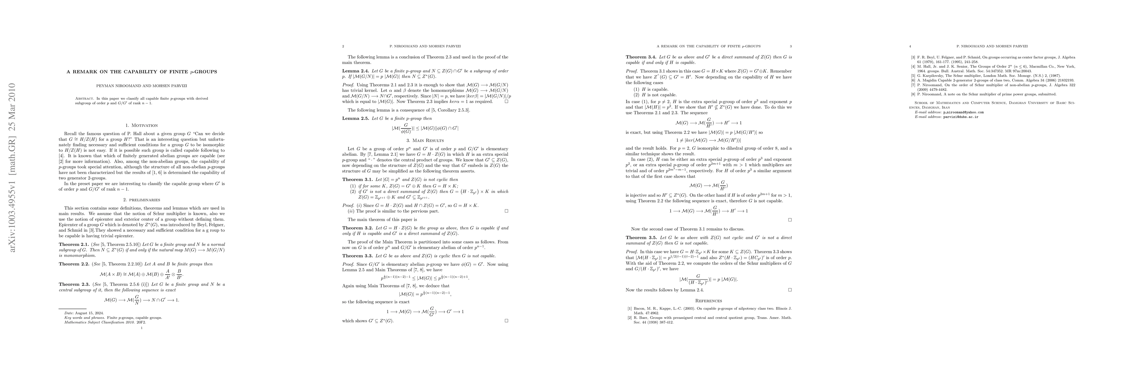 In this paper we classify all capable finite $p$-groups with derived subgroup of order $p$ and $G/G'$ of rank $n-1$.