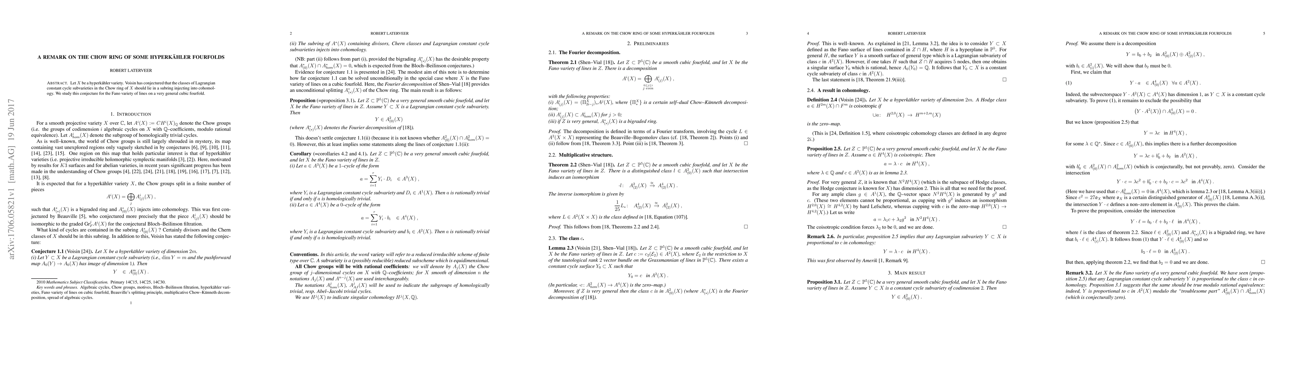 This paper investigates Voisin's conjecture regarding the structure of the Chow ring for hyperkähler fourfolds, specifically examining the Fano variety of lines on a very general cubic fourfold to determine if the classes of Lagrangian constant cycle subvarieties fit within an injective subring in cohomology.