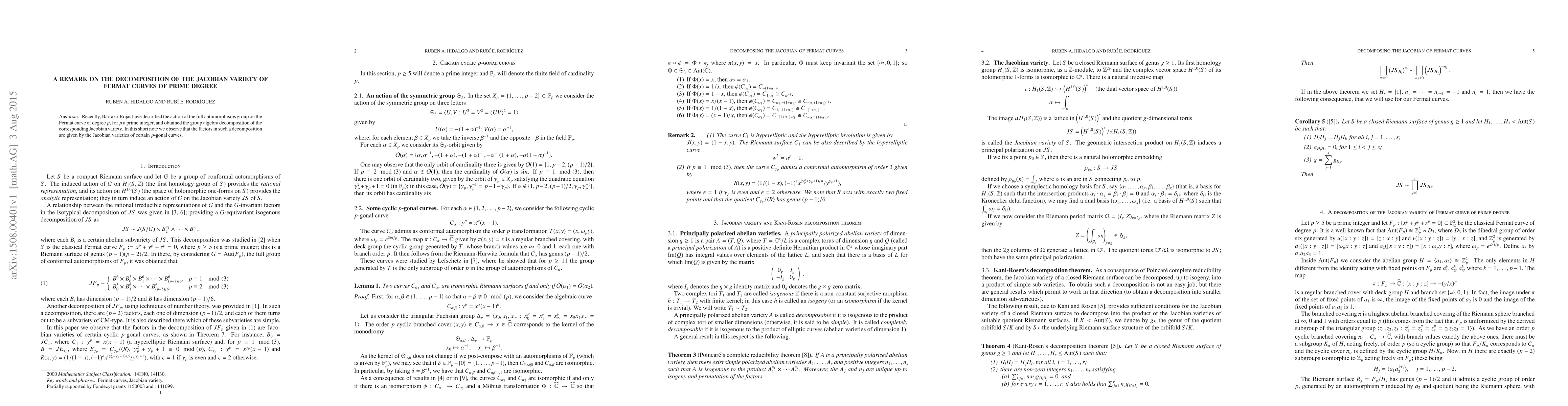 Summary: Barraza-Rojas's work on the automorphisms of Fermat curves of prime degree reveals a group algebra decomposition of their Jacobian varieties, which are further decomposed into Jacobian varieties of specific $p$-gonal curves. This insight provides a deeper understanding of the structure of these algebraic objects.