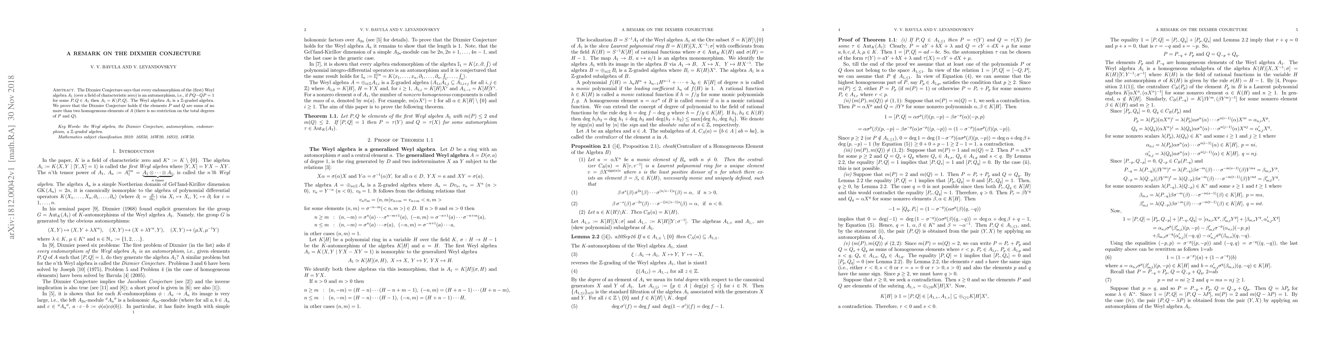 The Dixmier Conjecture posits that any endomorphism of the Weyl algebra $A_1$ is an automorphism. The paper proves that the conjecture holds when $P$ and $Q$ are sums of no more than two homogeneous elements of $A_1$.