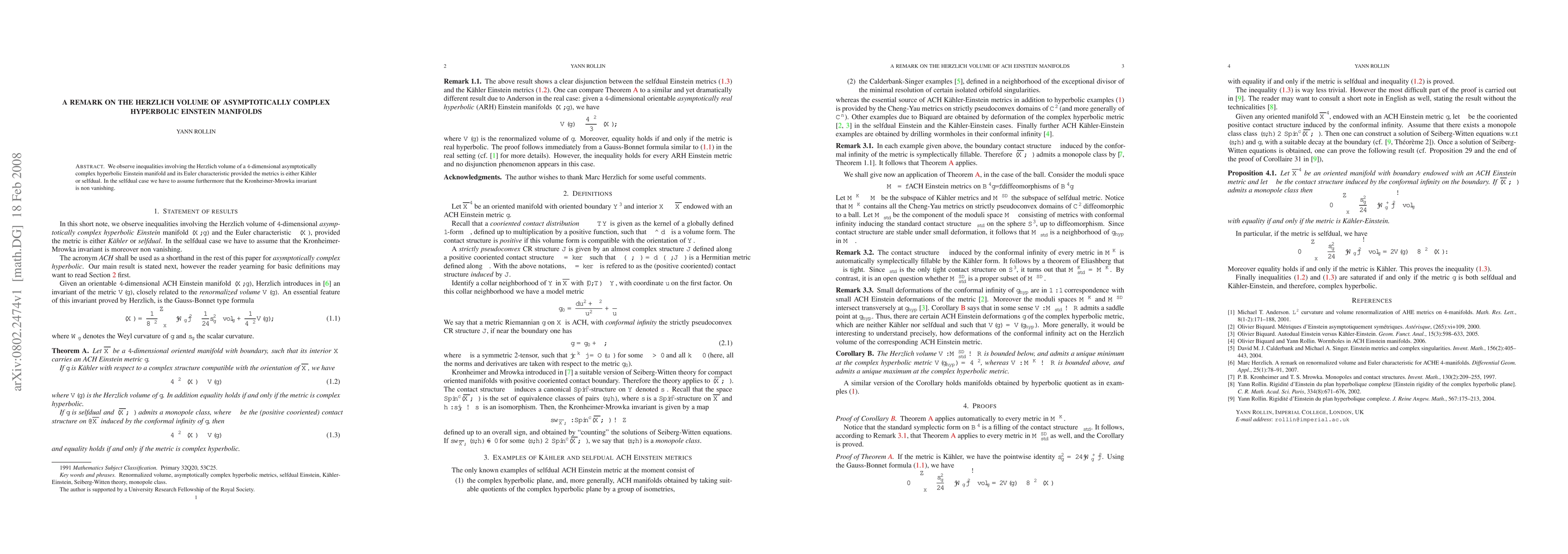 We observe inequalities involving the Herzlich volume of a 4-dimensional asymptotically complex hyperbolic Einstein manifold and its Euler characteristic provided the metrics is either Kaehler or selfdual. In the selfdual case we have to assume furthermore that the Kronheimer-Mrowka invariant is non vanishing.
