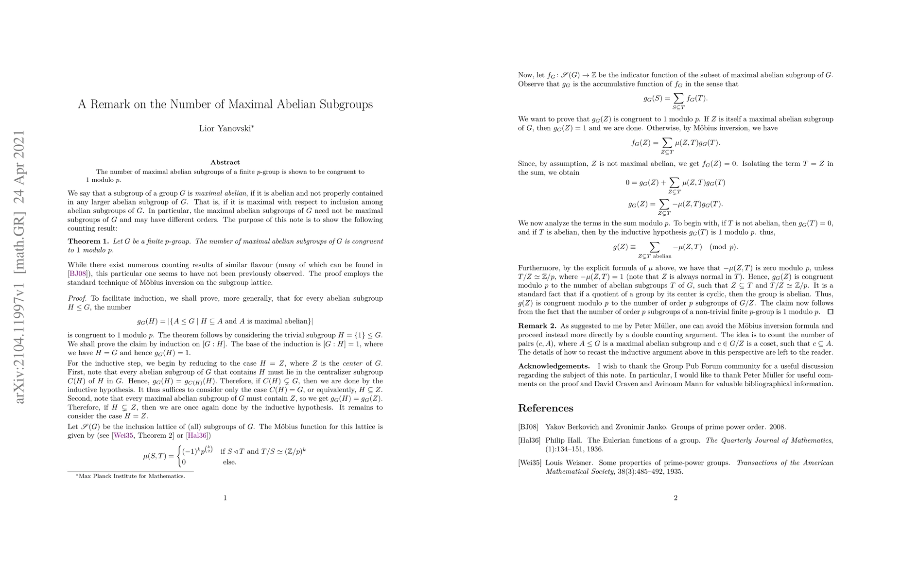 Summary: This paper demonstrates that the count of maximal abelian subgroups in a finite p-group is congruent to 1 modulo p, providing a significant result in group theory. The findings contribute to the understanding of subgroup structures within p-groups.
