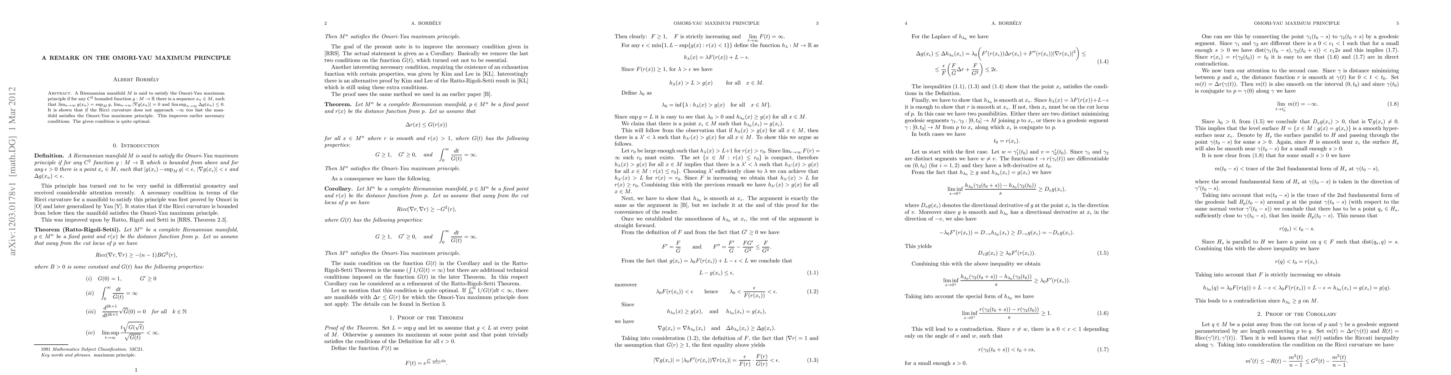 This paper demonstrates that Riemannian manifolds with Ricci curvature not decreasing too rapidly satisfy the Omori-Yau maximum principle, improving previous necessary conditions and showing the optimality of the given condition.