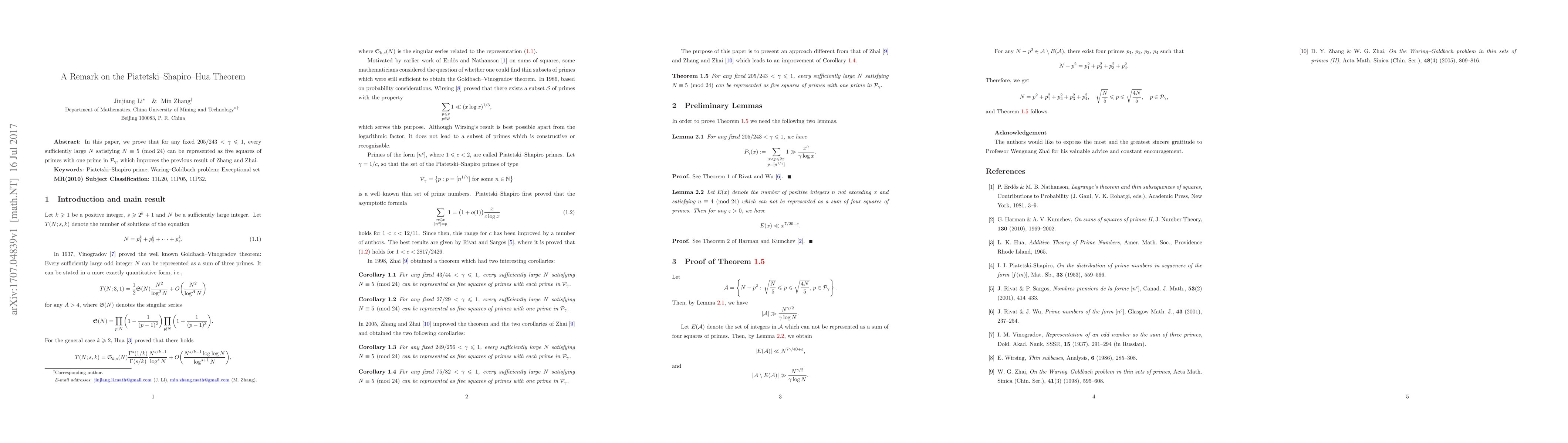 The research uses a combination of earlier work on sums of squares and probability considerations to prove the Piatetski-Shapiro-Hua theorem.