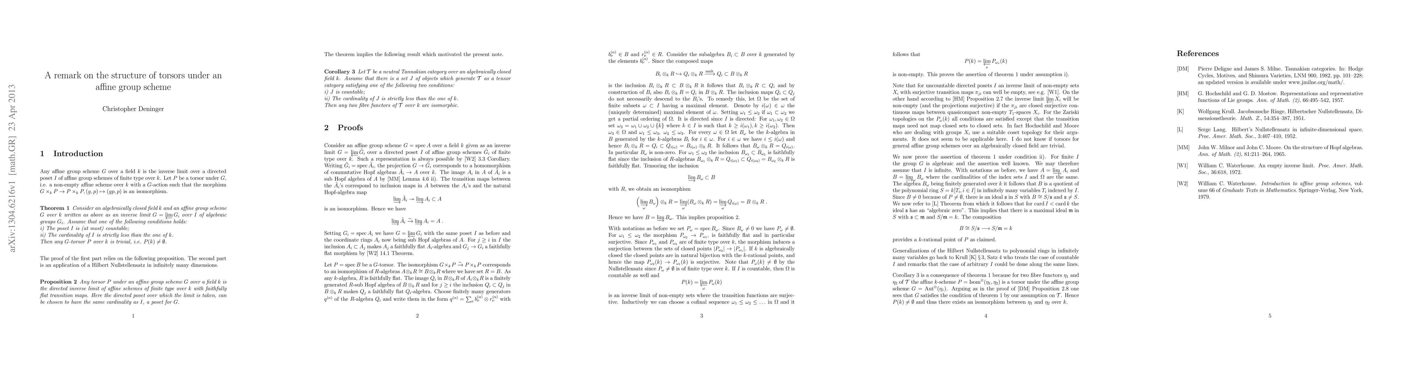 Research shows that torsors under non-finite type affine group schemes over algebraically closed fields are trivial, with implications for fibre functors on neutral Tannakian categories.