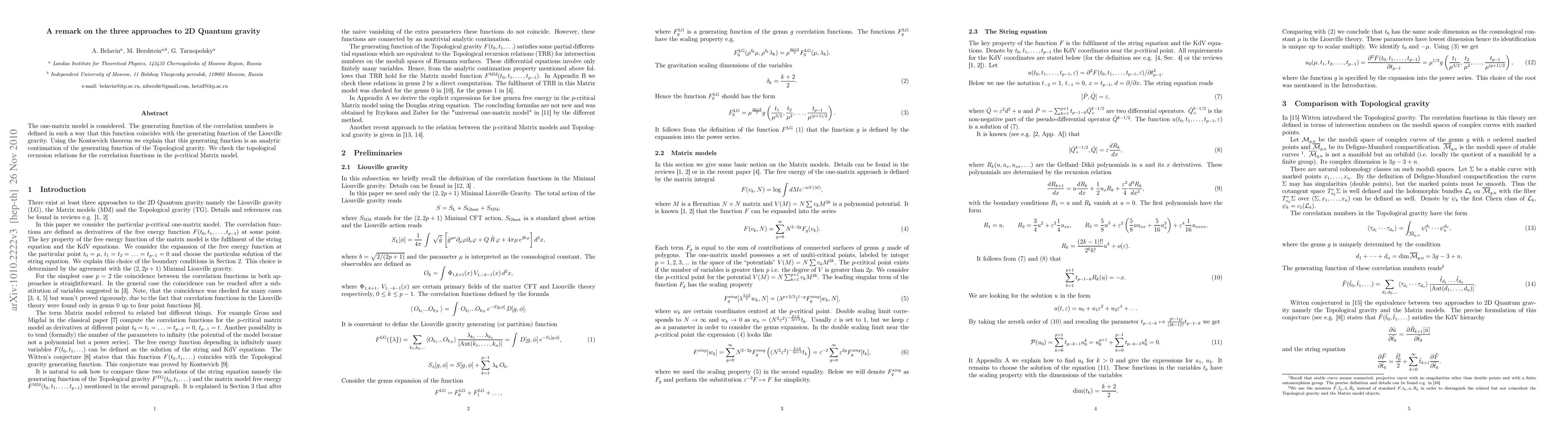 The one-matrix model is considered. The generating function of the correlation numbers is defined in such a way that this function coincide with the generating function of the Liouville gravity. Using the Kontsevich theorem we explain that this generating function is an analytic continuation of the generating function of the Topological gravity. We check the topological recursion relations for the correlation functions in the $p$-critical Matrix model.