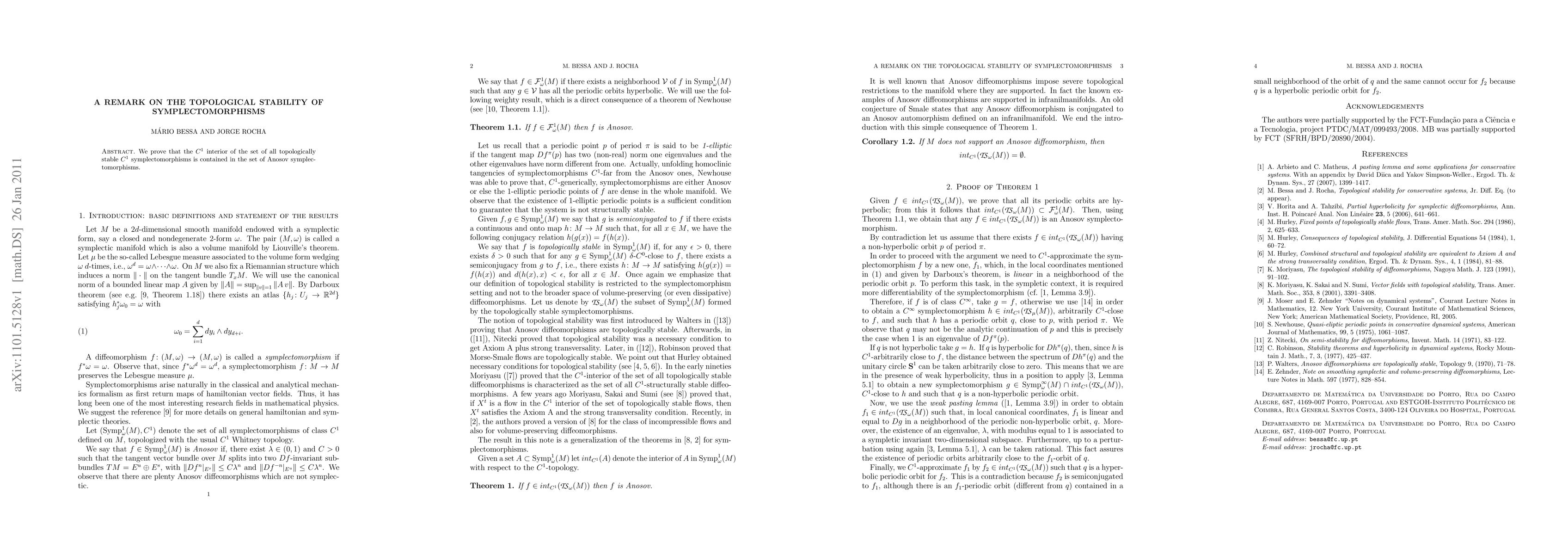 Researchers prove that a specific subset of symplectomorphisms with topological stability is contained within another subset of Anosov symplectomorphisms.