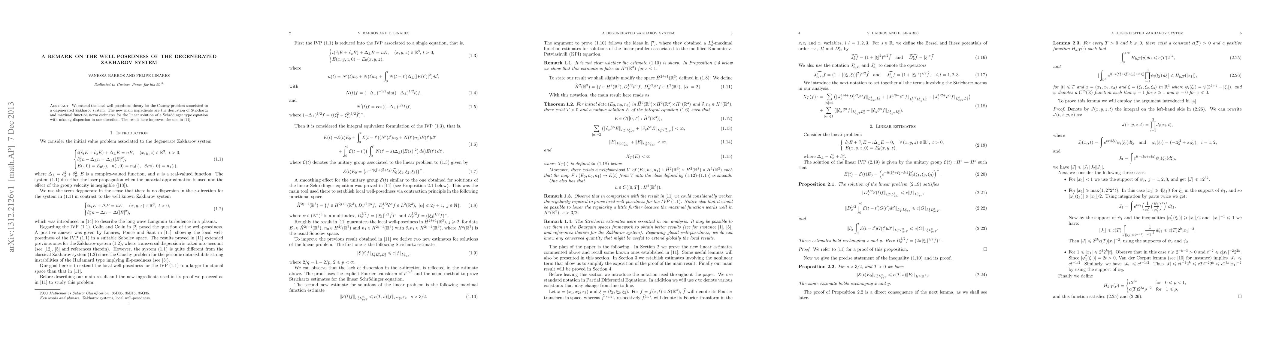 We extend the local well-posedness theory for the Cauchy problem associated to a degenerated Zakharov system. The new main ingredients are the derivation of Strichartz and maximal function norm estimates for the linear solution of a Schrodinger type equation with missing dispersion in one direction. The result here improves the one in [11].