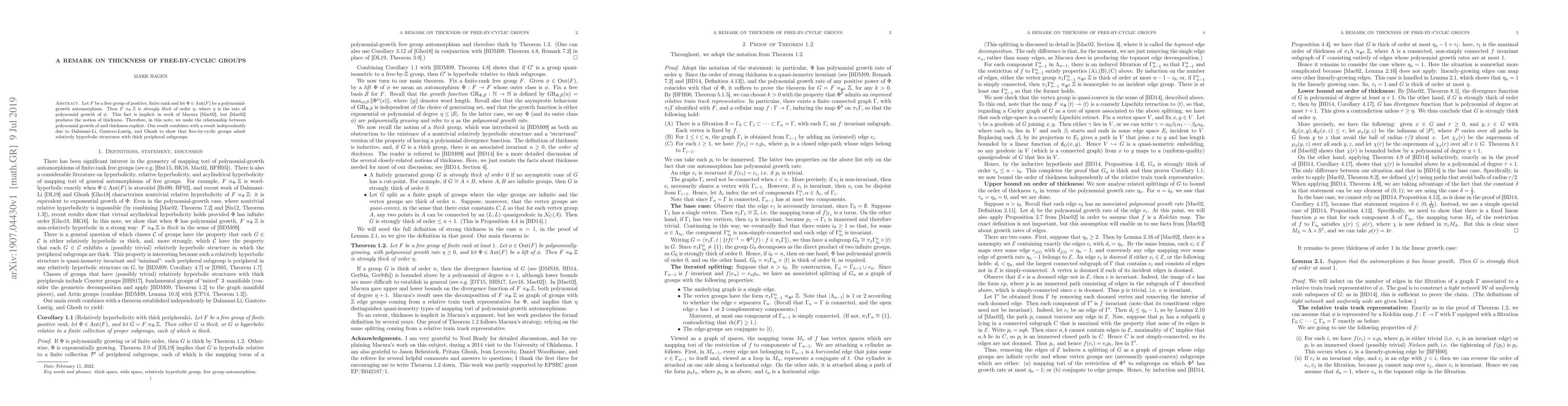 Let $F$ be a free group of positive, finite rank and let $\Phi\in Aut(F)$ be a polynomial-growth automorphism. Then $F\rtimes_\Phi\mathbb Z$ is strongly thick of order $\eta$, where $\eta$ is the rate of polynomial growth of $\phi$. This fact is implicit in work of Macura, but her work predates the notion of thickness. Therefore, in this note, we make the relationship between polynomial growth and thickness explicit. Our result combines with a result independently due to Dahmani-Li, Gautero-Lustig, and Ghosh to show that free-by-cyclic groups admit relatively hyperbolic structures with thick peripheral subgroups.