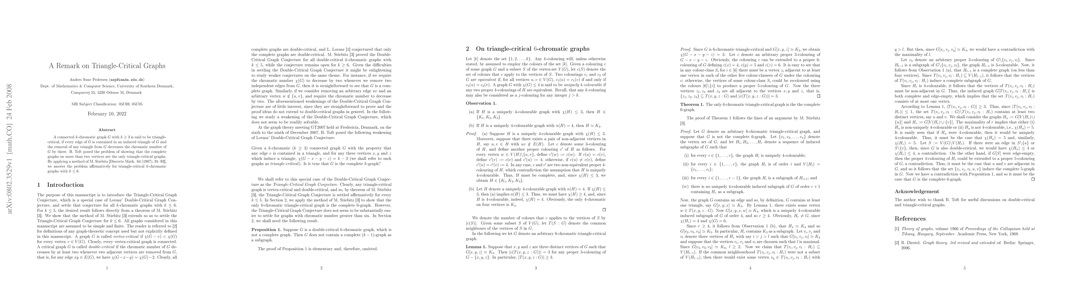 This research paper answers B. Toft's problem affirmatively for triangle-critical graphs with k ≤ 6, showing that complete graphs on more than two vertices are the only such graphs.