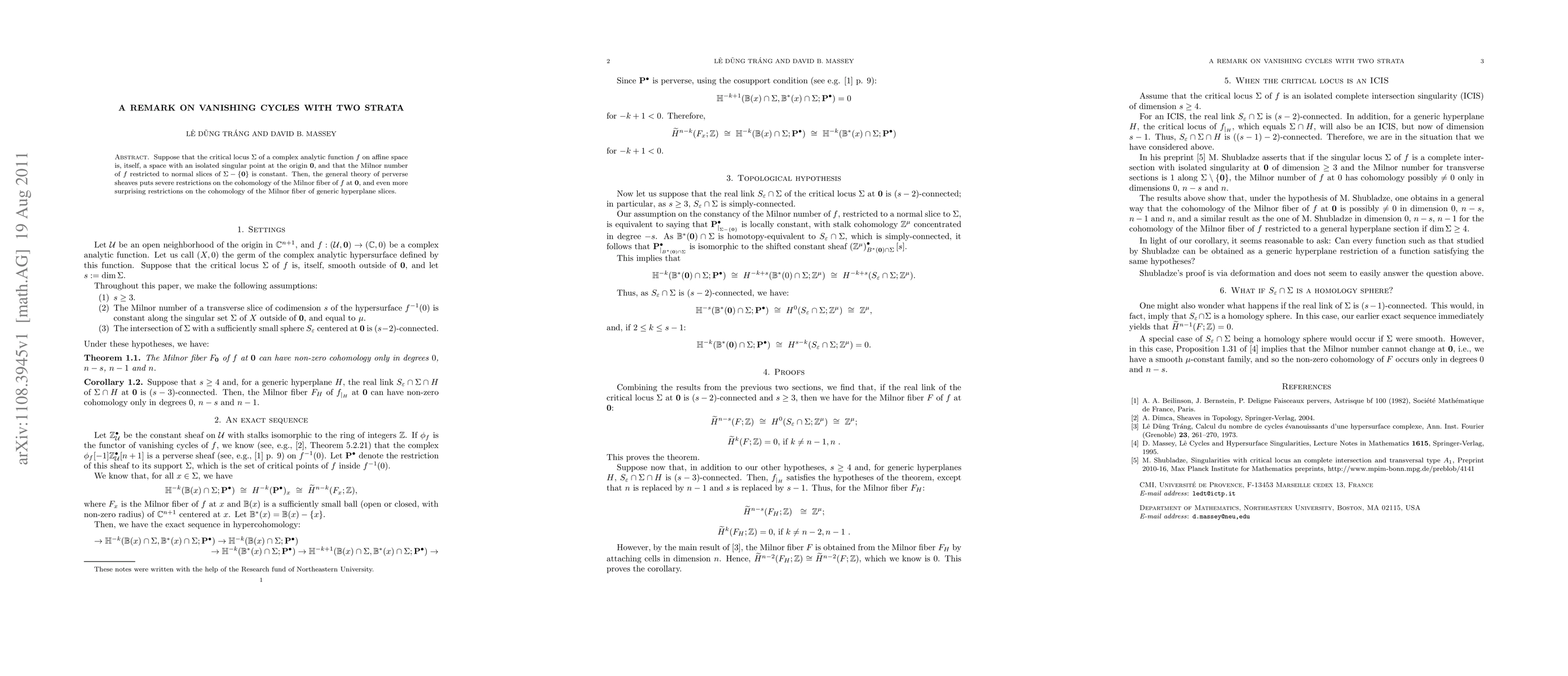 Suppose that the critical locus $\Sigma$ of a complex analytic function $f$ on affine space is, itself, a space with an isolated singular point at the origin $\0$, and that the Milnor number of $f$ restricted to normal slices of $\Sigma-\{\0\}$ is constant. Then, the general theory of perverse sheaves puts severe restrictions on the cohomology of the Milnor fiber of $f$ at $\0$, and even more surprising restrictions on the cohomology of the Milnor fiber of generic hyperplane slices.