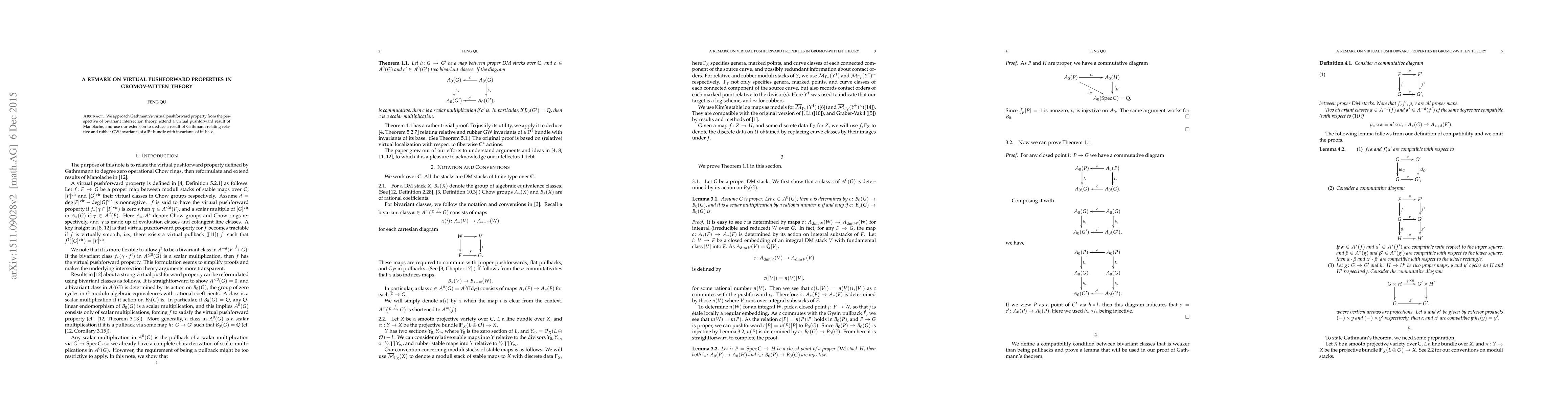 We approach Gathmann's virtual pushforward property from the perspective of bivariant intersection theory, extend a virtual pushforward result of Manolache, and use our extension to deduce a result of Gathmann relating relative and rubber GW invariants of a $P^1$ bundle with invariants of its base.