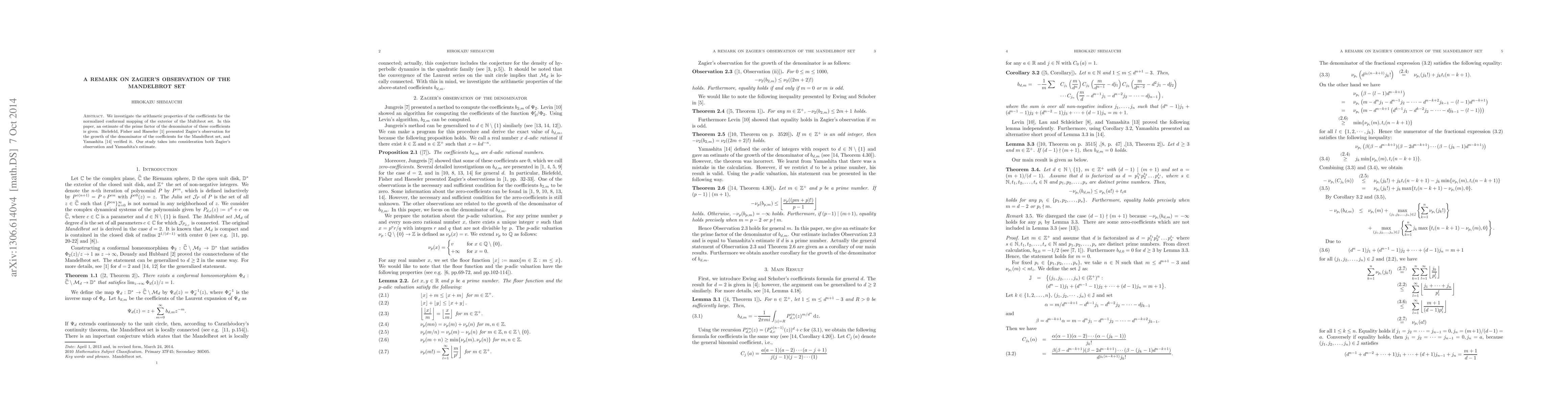We investigate the arithmetic properties of the coefficients for the normalized conformal mapping of the exterior of the Multibrot set. In this paper, an estimate of the prime factor of the denominator of these coefficients is given. Bielefeld, Fisher and Haeseler presented Zagier's observation for the growth of denominator of the coefficients for the Mandelbrot set and Yamashita verified it in his master thesis. Our study takes into consideration both Zagier's observation and Yamashita's estimate.