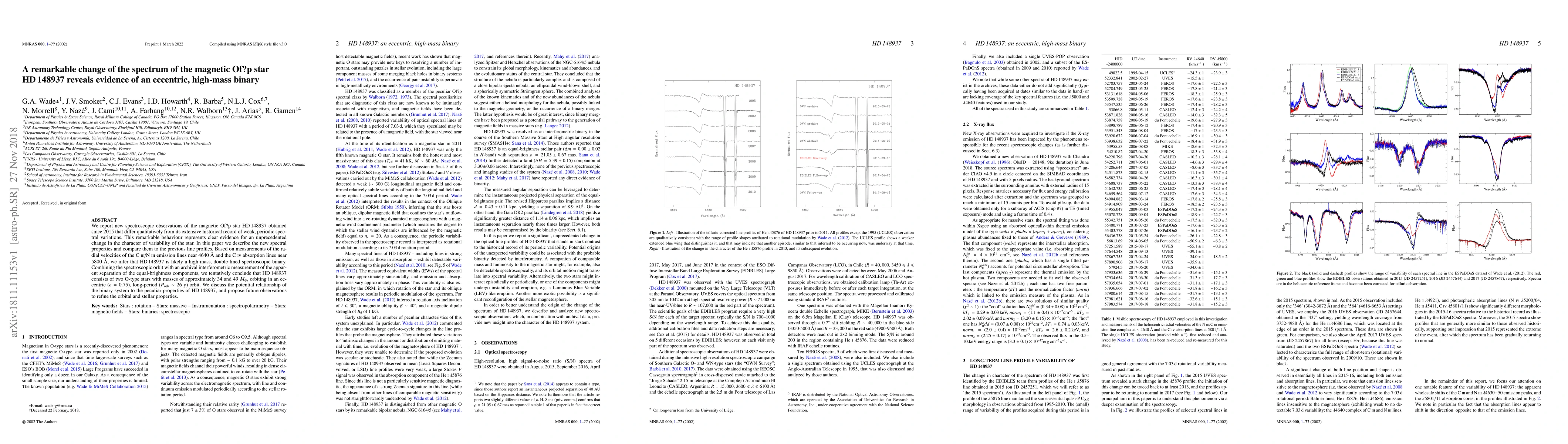 We report new spectroscopic observations of the magnetic Of?p star HD 148937 obtained since 2015 that differ qualitatively from its extensive historical record of weak, periodic spectral variations. This remarkable behaviour represents clear evidence for an unprecedented change in the character of variability of the star. In this paper we describe the new spectral properties and compare them to the previous line profiles. Based on measurements of the radial velocities of the C iii/N iii} emission lines near 4640 \AA\ and the C iv absorption lines near 5800 \AA, we infer that HD 148937 is likely a high-mass, double-lined spectroscopic binary. Combining the spectroscopic orbit with an archival interferometric measurement of the apparent separation of the equal-brightness components, we tentatively conclude that HD 148937 consists of two O-type stars with masses of approximately 34 and $49~M_\odot$, orbiting in an eccentric ($e=0.75$), long-period ($P_{\rm orb}\sim 26$ y) orbit. We discuss the potential relationship of the binary system to the peculiar properties of HD 148937, and propose future observations to refine the orbital and stellar properties.