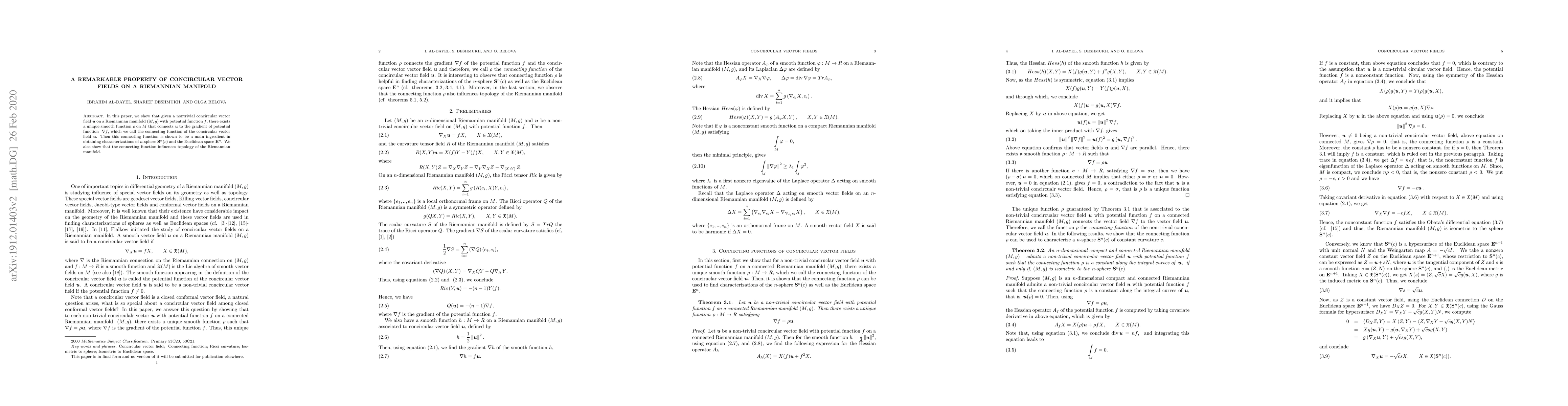 In this paper, we show that given a nontrivial concircular vector field $\boldsymbol{u}$ on a Riemannian manifold $(M,g)$ with potential function $f$, there exists a unique smooth function $\rho $ on $M$ that connects $\boldsymbol{u}$ to the gradient of potential function $\nabla f$, which we call the connecting function of the concircular vector field $\boldsymbol{u}$. Then this connecting function is shown to be a main ingredient in obtaining characterizations of $n$-sphere $\mathbf{S}^{n}(c)$ and the Euclidean space $\mathbf{E}^{n}$. We also show that the connecting function influences topology of the Riemannian manifold.