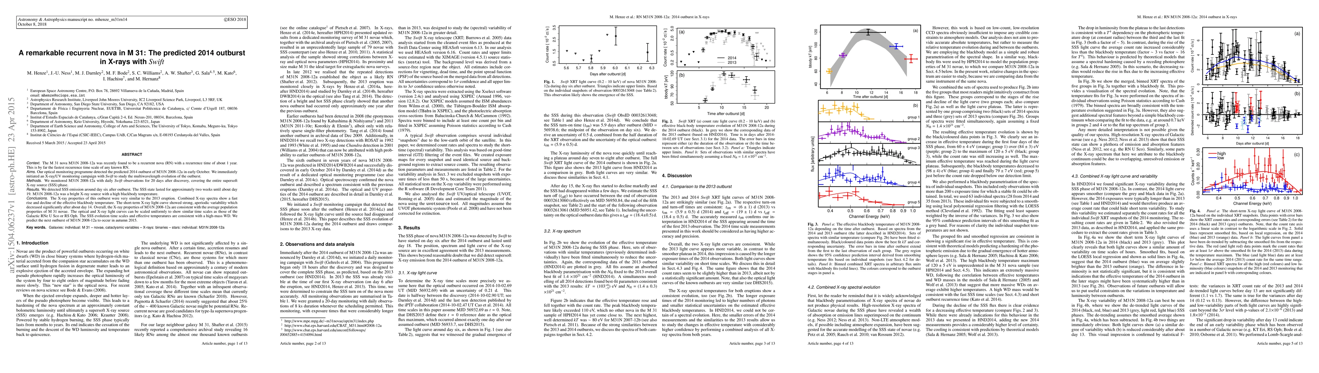 A rare nova in M 31 was detected to recur in just one year, with Swift X-ray monitoring revealing a bright supersoft X-ray source with fast rise and decline of effective blackbody temperature, consistent with high-mass white dwarf predictions.