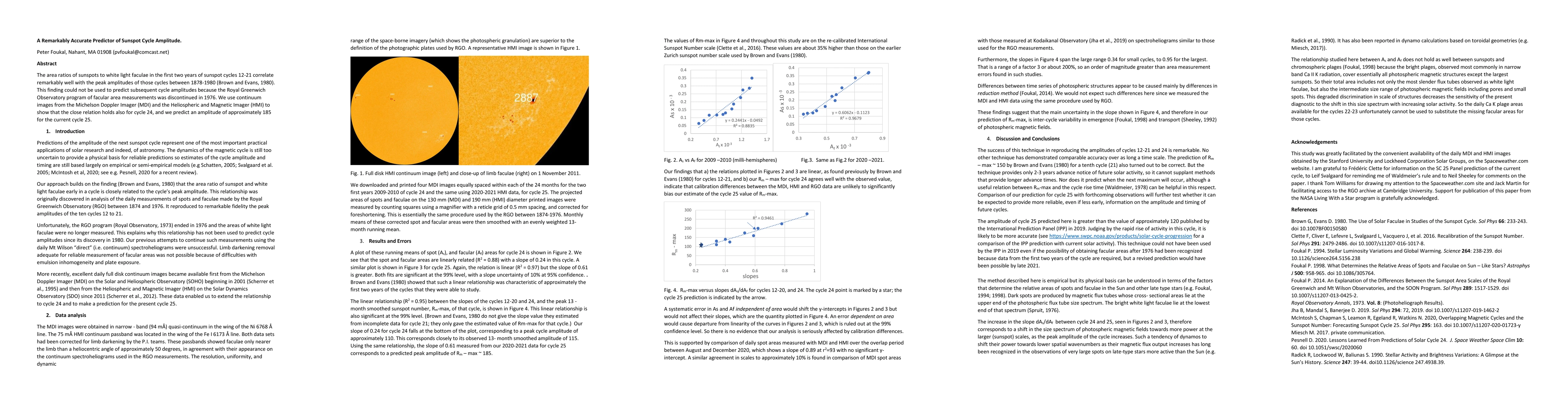 The area ratios of sunspots to white light faculae in the first two years of sunspot cycles 12-21 correlate remarkably well with the peak amplitudes of those cycles between 1878-1980 (Brown and Evans, 1980). This finding could not be used to predict subsequent cycle amplitudes because the Royal Greenwich Observatory program of facular area measurements was discontinued in 1976. We use continuum images from the Michelson Doppler Imager (MDI) and the Heliospheric and Magnetic Imager (HMI) to show that the close relation holds also for cycle 24, and we predict an amplitude of approximately 185 for the current cycle 25.