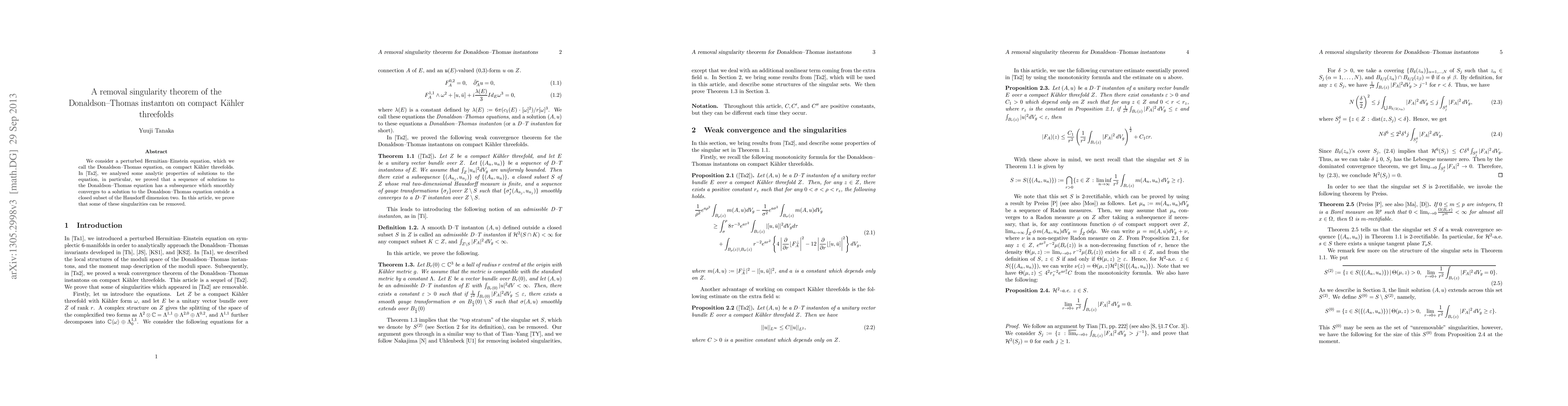 We consider a perturbed Hermitian-Einstein equation, which we call the Donaldson-Thomas equation, on compact K\"ahler threefolds. In arXiv:0805.2195, we analysed some analytic properties of solutions to the equation, in particular, we proved that a sequence of solutions to the Donaldson-Thomas equation has a subsequence which smoothly converges to a solution to the Donaldson-Thomas equation outside a closed subset of the Hausdorff dimension two. In this article, we prove that some of these singularities can be removed.