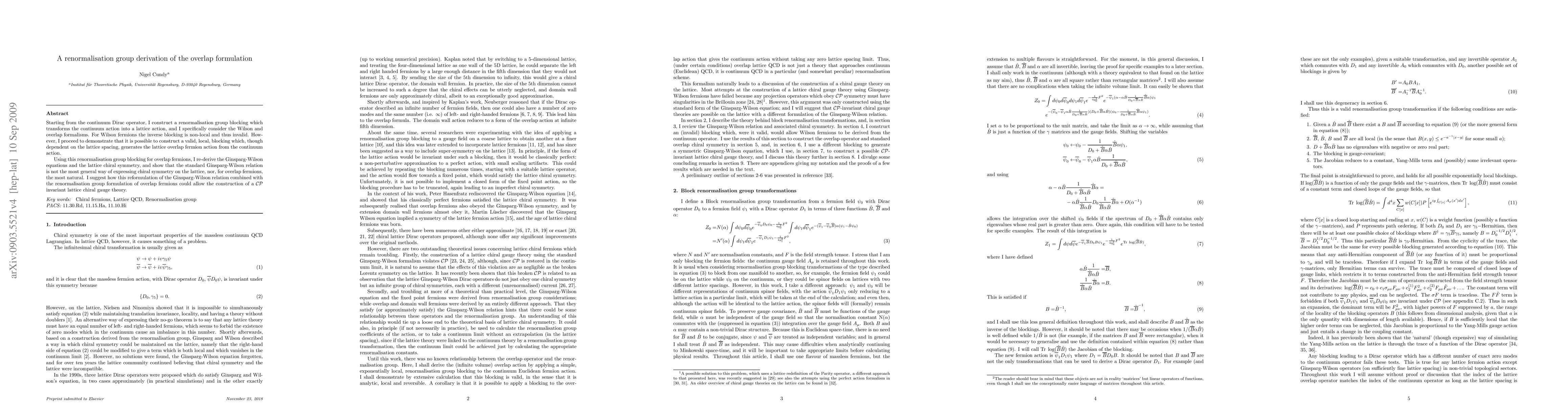 Researchers developed a method to transform continuum Dirac operators into lattice actions using a renormalisation group blocking approach, leading to the derivation of the Ginsparg-Wilson equations and lattice chiral symmetry for overlap fermions.