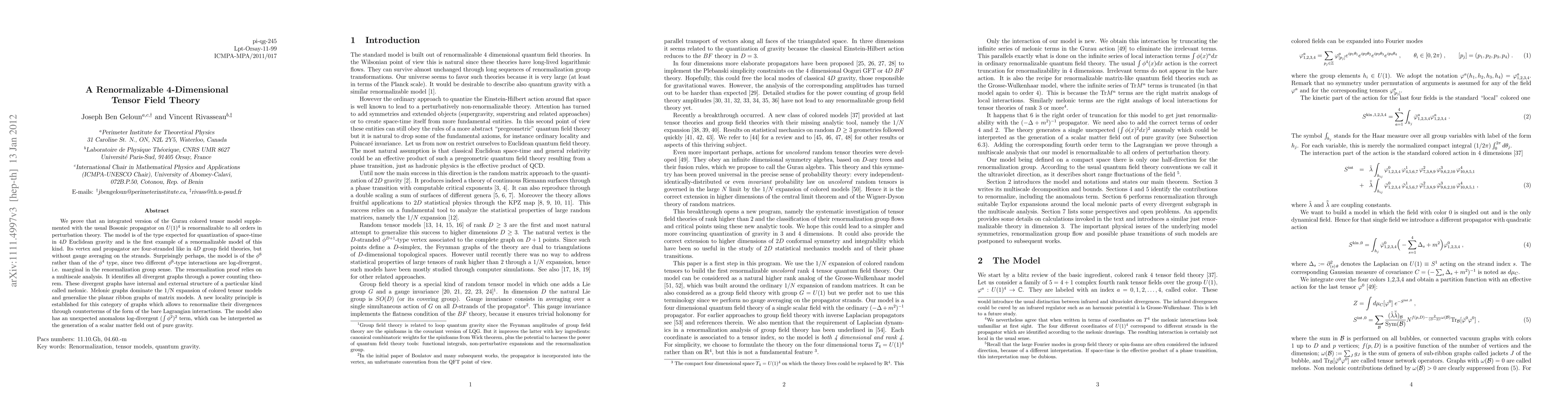This paper demonstrates the renormalizability of a 4-dimensional tensor field theory based on the Gurau colored tensor model, showing it can be quantized in 4D Euclidean gravity. The model features $\phi^6$ interactions and employs a multiscale analysis to identify and renormalize its log-divergent melonic graphs, establishing a new locality principle.