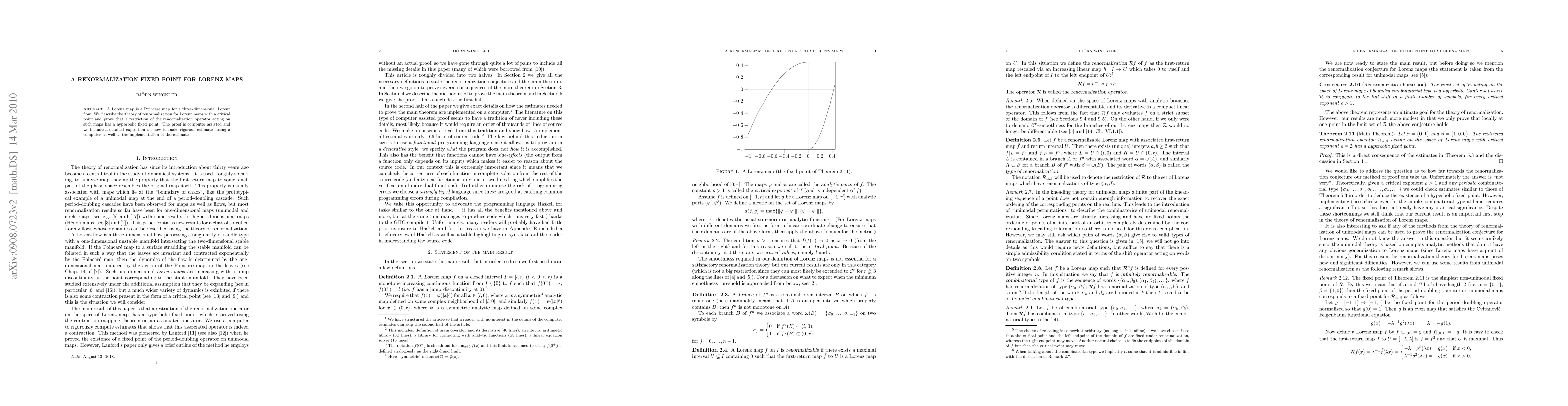 This paper presents a theoretical framework for renormalization of Lorenz maps, demonstrating that the renormalization operator has a hyperbolic fixed point. The proof is computer-assisted, incorporating rigorous estimates and detailed computational implementation methods.