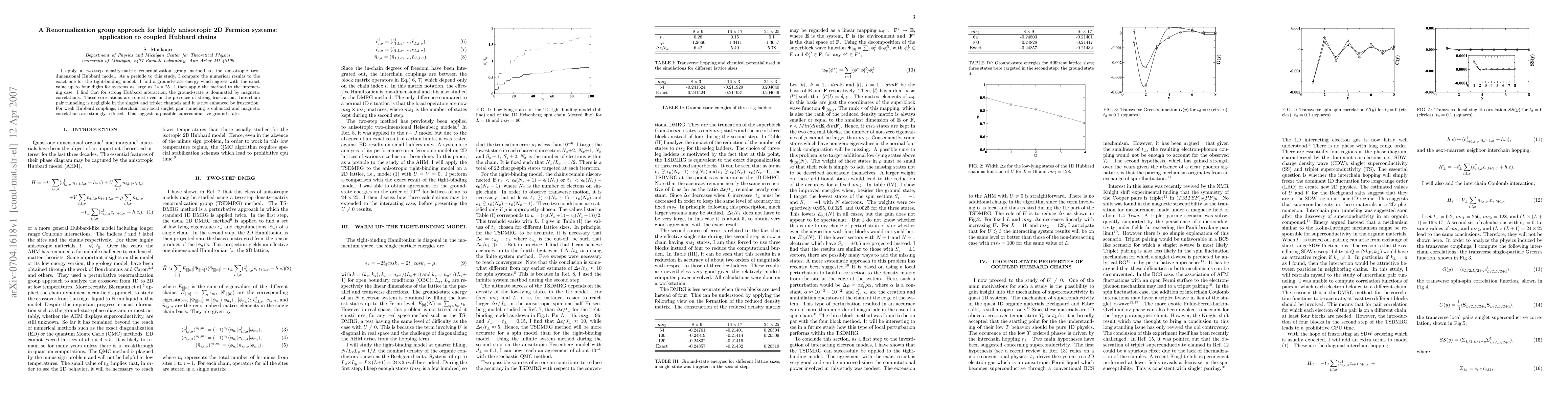 This paper employs a two-step density-matrix renormalization group method to study the anisotropic 2D Hubbard model, finding strong magnetic correlations in the ground state for strong interactions. For weak interactions, enhanced interchain tunneling suggests a potential superconducting ground state.