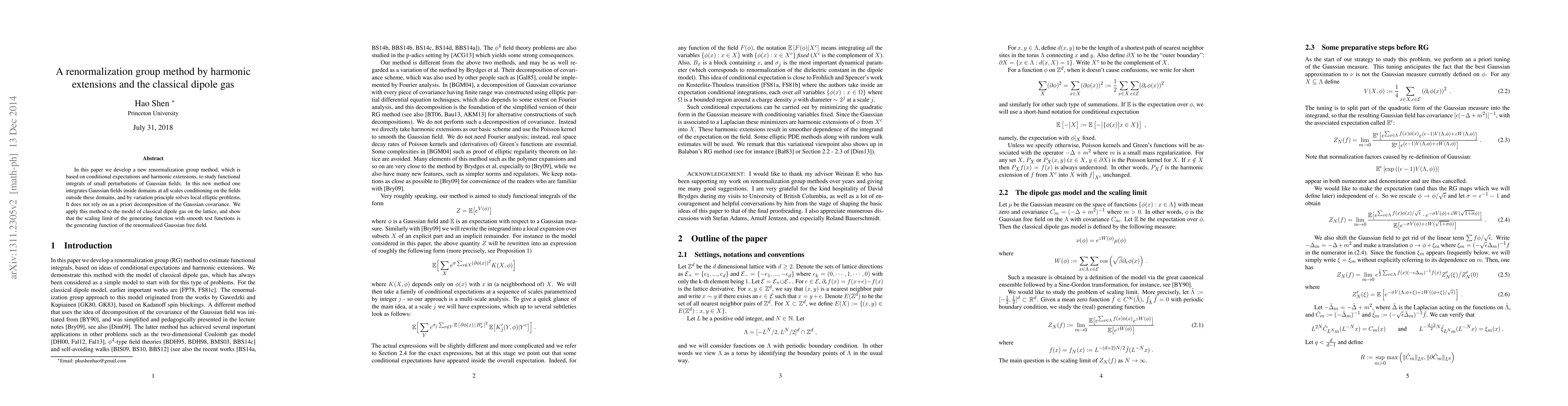 In this paper we develop a new renormalization group method, which is based on conditional expectations and harmonic extensions, to study functional integrals related with small perturbations of Gaussian fields. In this new method one integrates Gaussian fields inside domains at all scales conditioning on the fields outside these domains, and by variation principle solves local elliptic problems. It does not rely on an a priori decomposition of the Gaussian covariance. We apply this method to the model of classical dipole gas on the lattice, and show that the scaling limit of the generating function with smooth test functions is the generating function of the renormalized Gaussian free field.