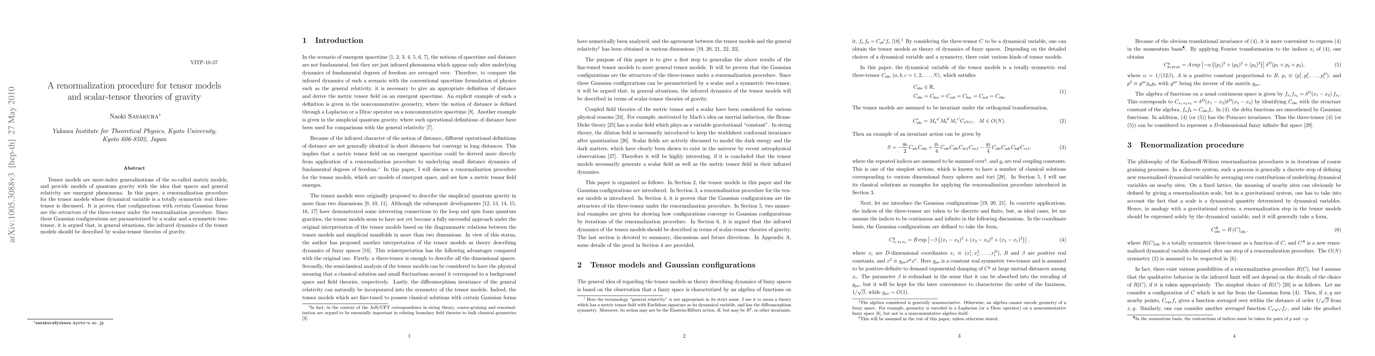 Tensor models are more-index generalizations of the so-called matrix models, and provide models of quantum gravity with the idea that spaces and general relativity are emergent phenomena. In this paper, a renormalization procedure for the tensor models whose dynamical variable is a totally symmetric real three-tensor is discussed. It is proven that configurations with certain Gaussian forms are the attractors of the three-tensor under the renormalization procedure. Since these Gaussian configurations are parameterized by a scalar and a symmetric two-tensor, it is argued that, in general situations, the infrared dynamics of the tensor models should be described by scalar-tensor theories of gravity.