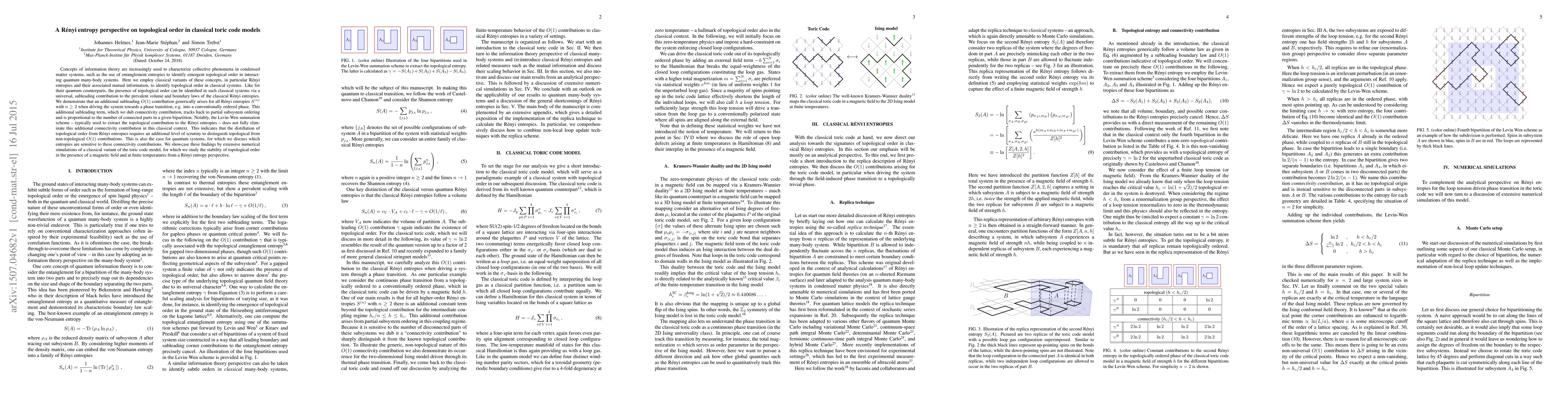 This paper uses Renyi entropies to identify topological order in classical systems, finding a subleading $O(1)$ contribution that tracks partial subsystem ordering, and demonstrates its impact on the stability of topological order.