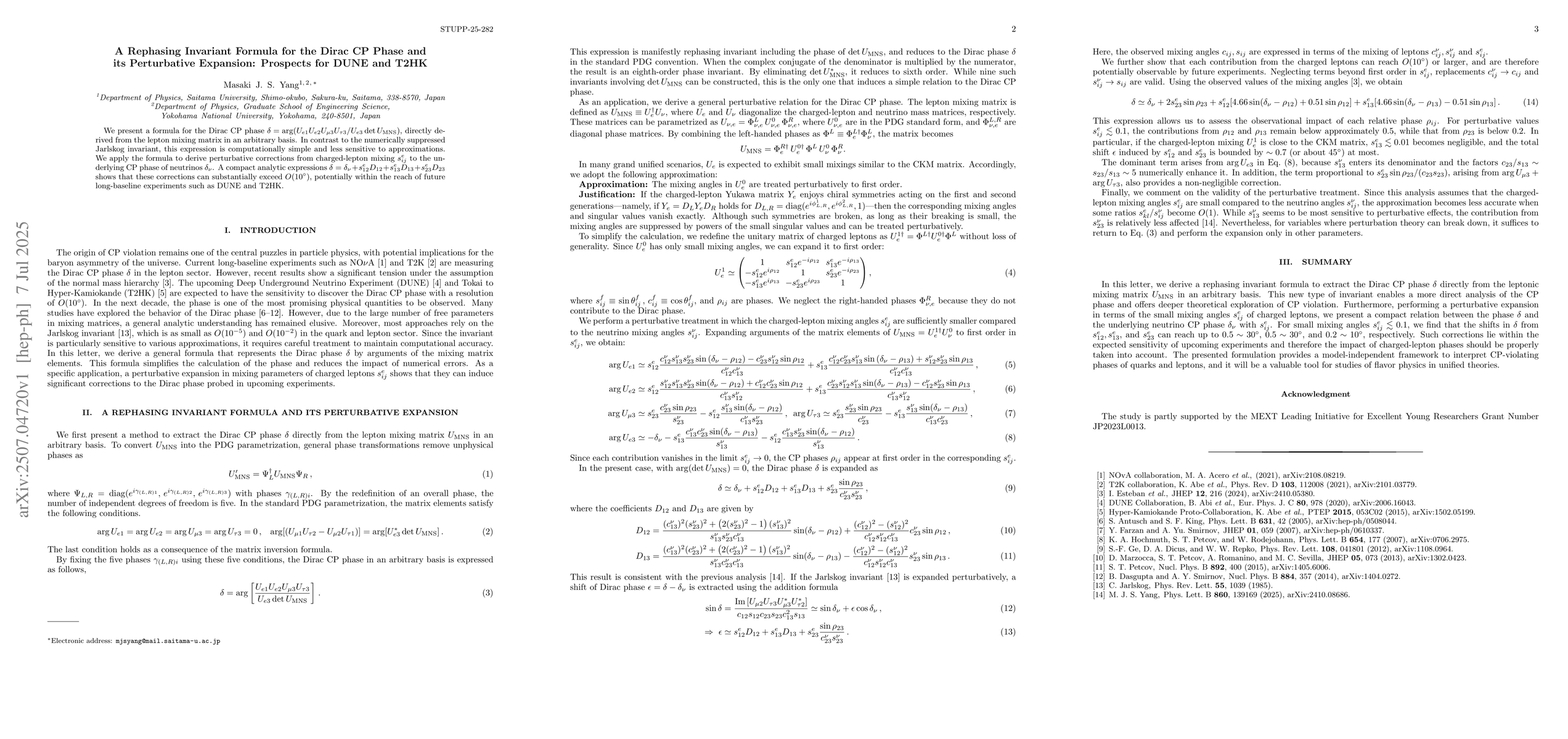 We present a formula for the Dirac CP phase $\delta = \arg ( U_{e1} U_{e2} U_{\mu 3} U_{\tau 3} / U_{e3} \det U_{\rm MNS} )$, directly derived from the lepton mixing matrix in an arbitrary basis. In contrast to the numerically suppressed Jarlskog invariant, this expression is computationally simple and less sensitive to approximations. We apply the formula to derive perturbative corrections from charged-lepton mixing $s_{ij}^{e}$ to the underlying CP phase of neutrinos $\delta_{\nu}$. A compact analytic expressions $\delta = \delta_{\nu} + s_{12}^{e} D_{12} + s_{13}^{e} D_{13} + s_{23}^{e} D_{23}$ shows that these corrections can substantially exceed $O(10^{\circ})$, potentially within the reach of future long-baseline experiments such as DUNE and T2HK.
