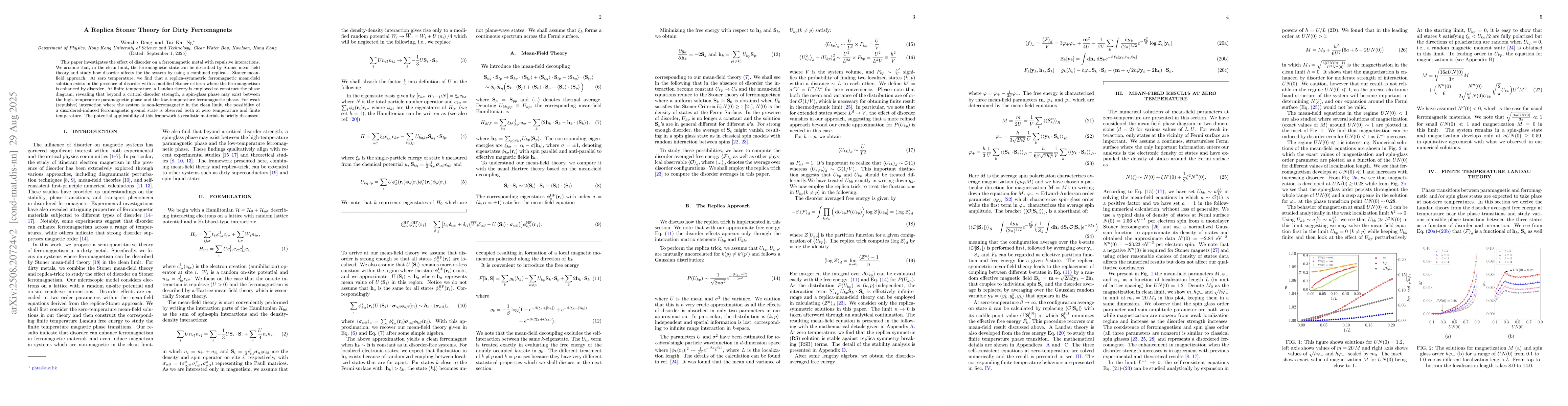 This paper investigates the effect of disorder on a ferromagnetic metal with repulsive interactions. We assume that, in the clean limit, the ferromagnetic state can be described by Stoner mean-field theory and study how disorder affects the the system by using a combined replica + Stoner mean-field approach. At zero temperature, we find that a replica-symmetric ferromagnetic mean-field solution exists in the presence of disorder with a modified Stoner criteria where the ferromagnetism is enhanced by disorder. At finite temperature, a Landau theory is employed to construct the phase diagram, revealing that beyond a critical disorder strength, a spin-glass phase may exist between the high-temperature paramagnetic phase and the low-temperature ferromagnetic phase. For weak (repulsive) interaction where the system is non-ferromagnetic in the clean limit, the possibility of a disordered-induced ferromagnetic ground state is observed both at zero temperature and finite temperature. The potential applicability of this framework to realistic materials is briefly discussed.