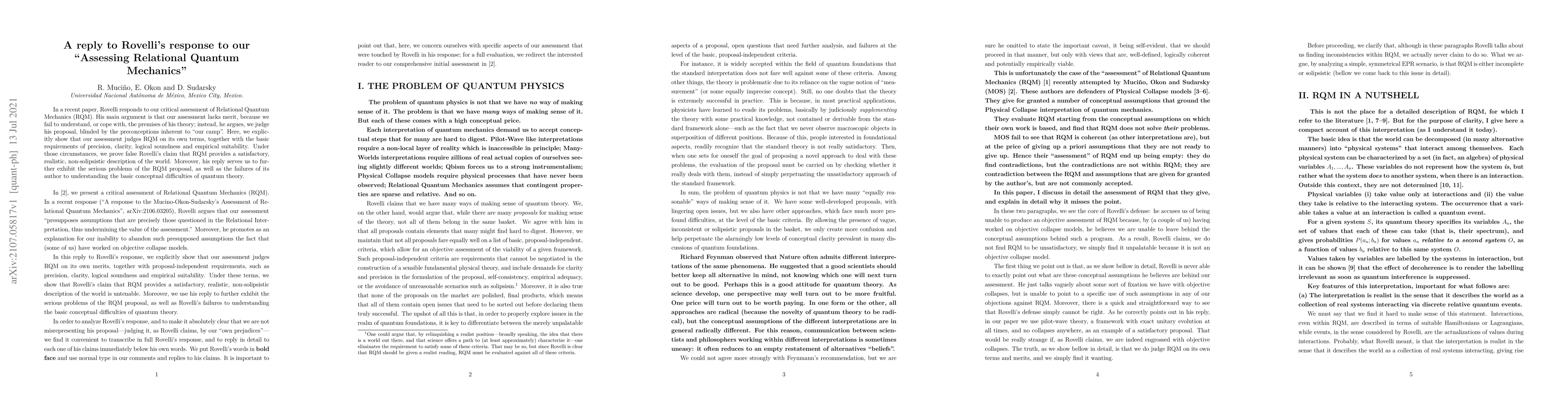 In a recent paper, Rovelli responds to our critical assessment of Relational Quantum Mechanics (RQM). His main argument is that our assessment lacks merit, because we fail to understand, or cope with, the premises of his theory; instead, he argues, we judge his proposal, blinded by the preconceptions inherent to ``our camp''. Here, we explicitly show that our assessment judges RQM on its own terms, together with the basic requirements of precision, clarity, logical soundness and empirical suitability. Under those circumstances, we prove false Rovelli's claim that RQM provides a satisfactory, realistic, non-solipsistic description of the world. Moreover, his reply serves us to further exhibit the serious problems of the RQM proposal, as well as the failures of its author to understanding the basic conceptual difficulties of quantum theory.