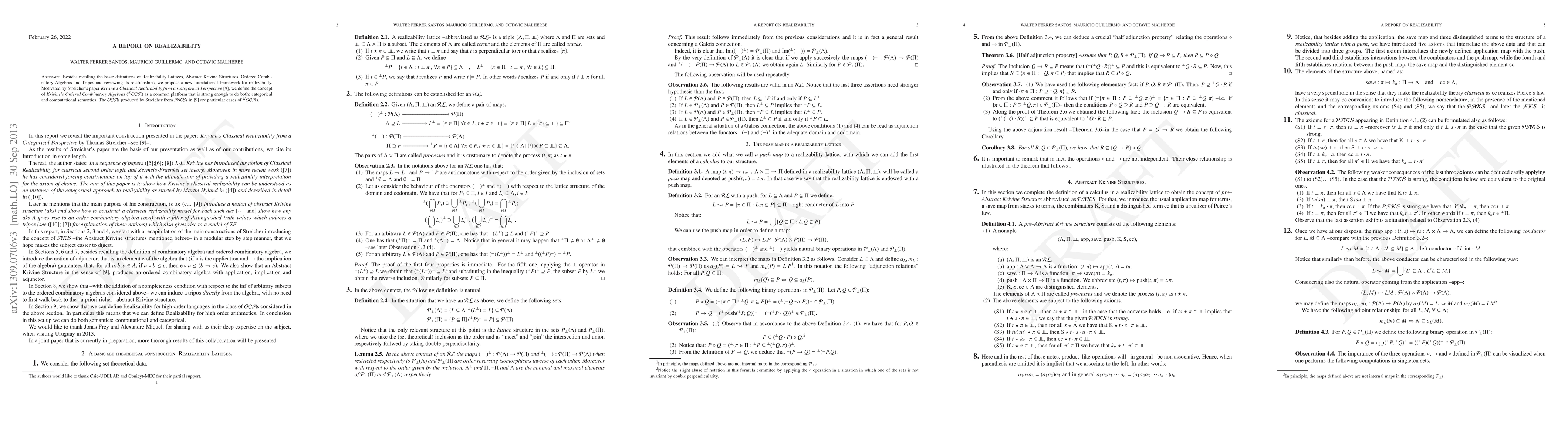 Besides recalling the basic definitions of Realizability Lattices, Abstract Krivine Structures, Ordered Combinatory Algebras and Tripos and reviewing its relationships, we propose a new foundational framework for realizability. Motivated by Streicher's paper "Krivine's Classical Realizability from a Categorical Perspective" [9], we define the concept of Krivine's Ordered Combinatory Algebras (kOKA) as a common platform that is strong enough to do both: categorical and computational semantics. The OCAs produced by Streicher from AKSs in [9] are particular cases of kOKAs.