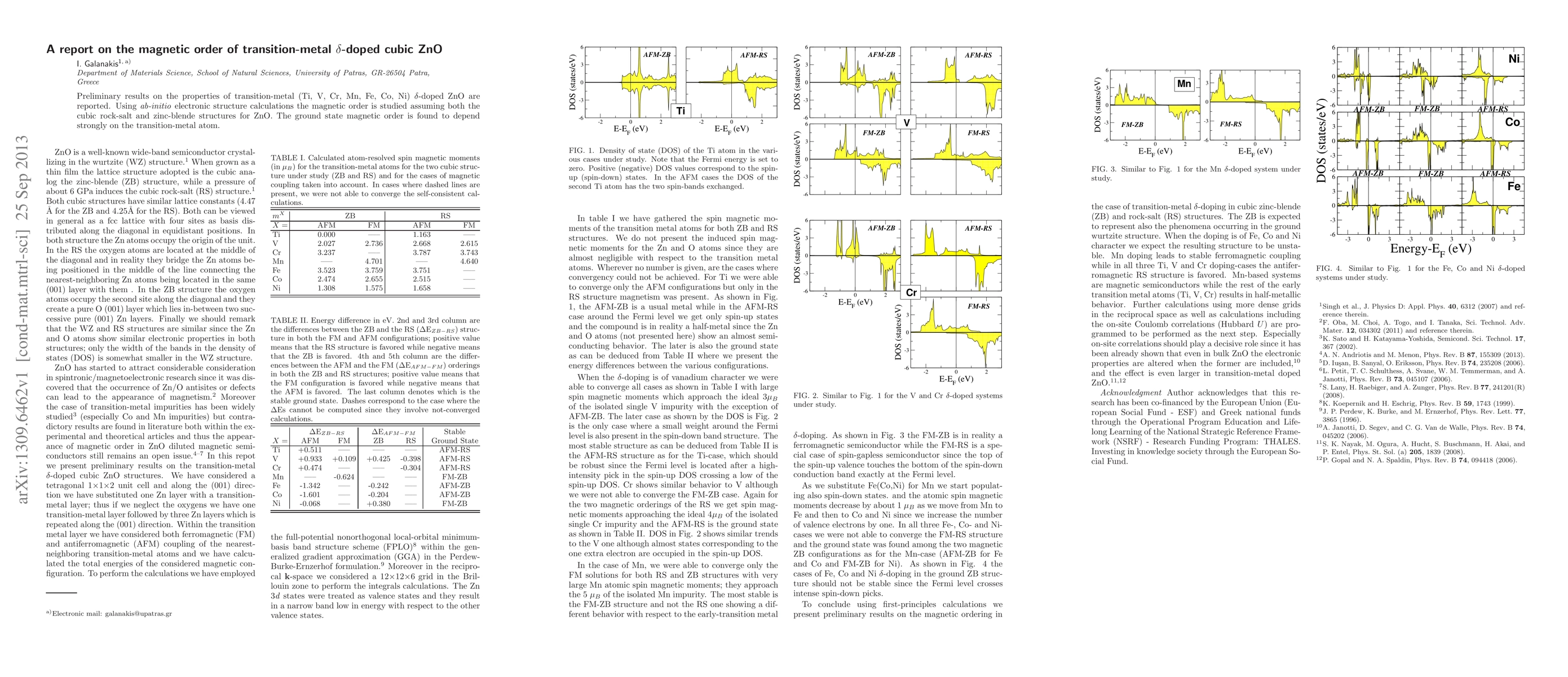 This study reports preliminary findings on the magnetic order of transition-metal $\delta$-doped cubic ZnO, revealing that the ground state magnetic order varies significantly depending on the specific transition-metal dopant, as determined through \emph{ab-initio} electronic structure calculations.
