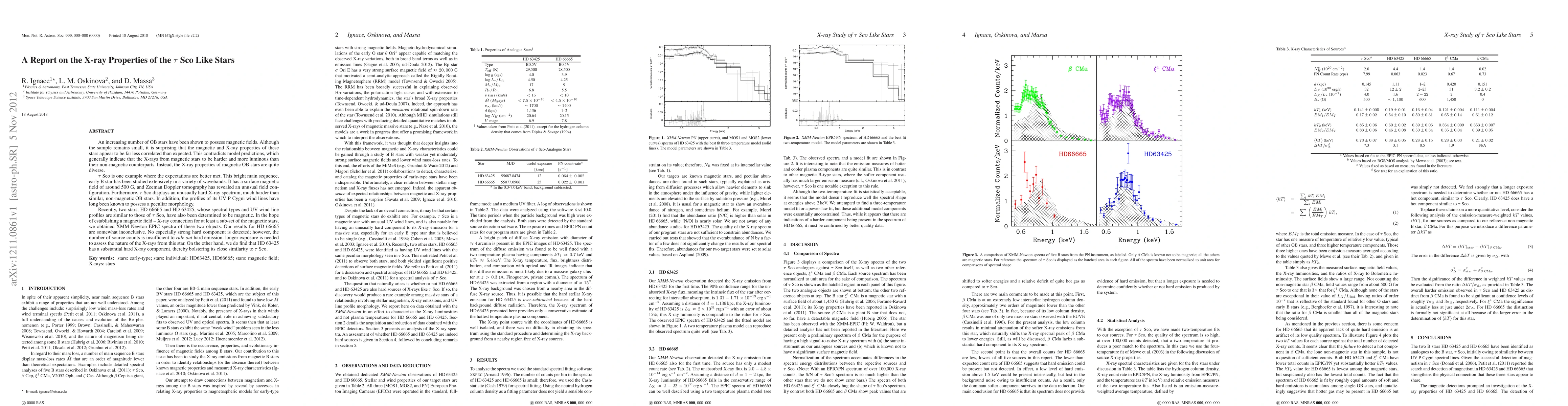 An increasing number of OB stars have been shown to possess magnetic fields. Although the sample remains small, it is surprising that the magnetic and X-ray properties of these stars appear to be far less correlated than expected. This contradicts model predictions, which generally indicate that the X-rays from magnetic stars to be harder and more luminous than their non-magnetic counterparts. Instead, the X-ray properties of magnetic OB stars are quite diverse. $\tau$ Sco is one example where the expectations are better met. This bright main sequence, early B star has been studied extensively in a variety of wavebands. It has a surface magnetic field of around 500 G, and Zeeman Doppler tomography has revealed an unusual field configuration. Furthermore, tau Sco displays an unusually hard X-ray spectrum, much harder than similar, non-magnetic OB stars. In addition, the profiles of its UV P Cygni wind lines have long been known to possess a peculiar morphology. Recently, two stars, HD 66665 and HD 63425, whose spectral types and UV wind line profiles are similar to those of $\tau$ Sco, have also been determined to be magnetic. In the hope of establishing a magnetic field - X-ray connection for at least a sub-set of the magnetic stars, we obtained XMM-Newton EPIC spectra of these two objects. Our results for HD 66665 are somewhat inconclusive. No especially strong hard component is detected; however, the number of source counts is insufficient to rule out hard emission. longer exposure is needed to assess the nature of the X-rays from this star. On the other hand, we do find that HD 63425 has a substantial hard X-ray component, thereby bolstering its close similarity to tau Sco.