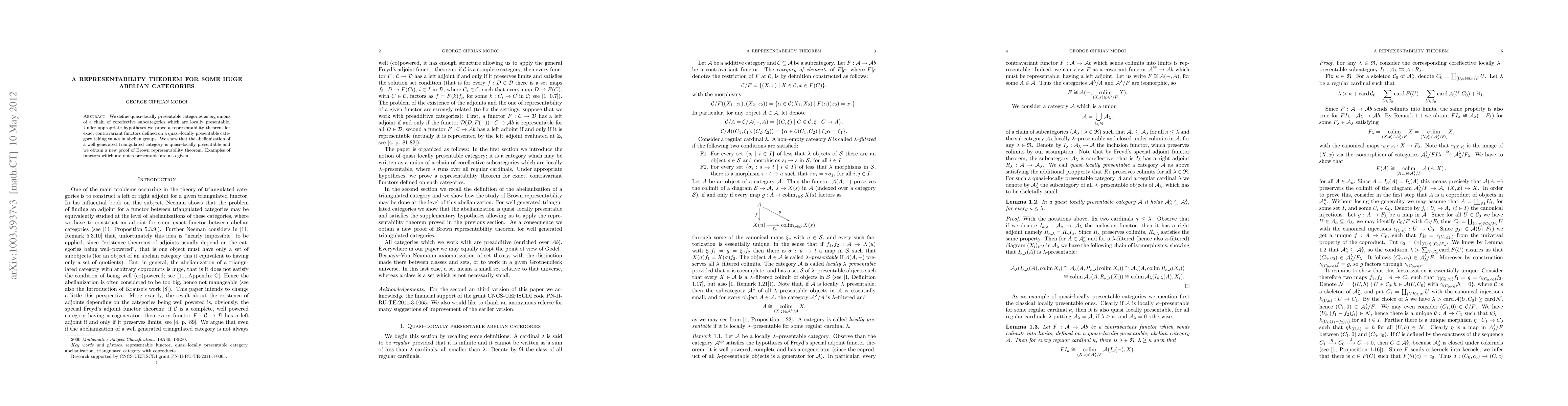 The paper establishes a representability theorem for exact contravariant functors on quasi-locally presentable categories, proving that the abelianization of well-generated triangulated categories is quasi-locally presentable, and provides examples of non-representable functors. It also offers a new proof of the Brown representability theorem.