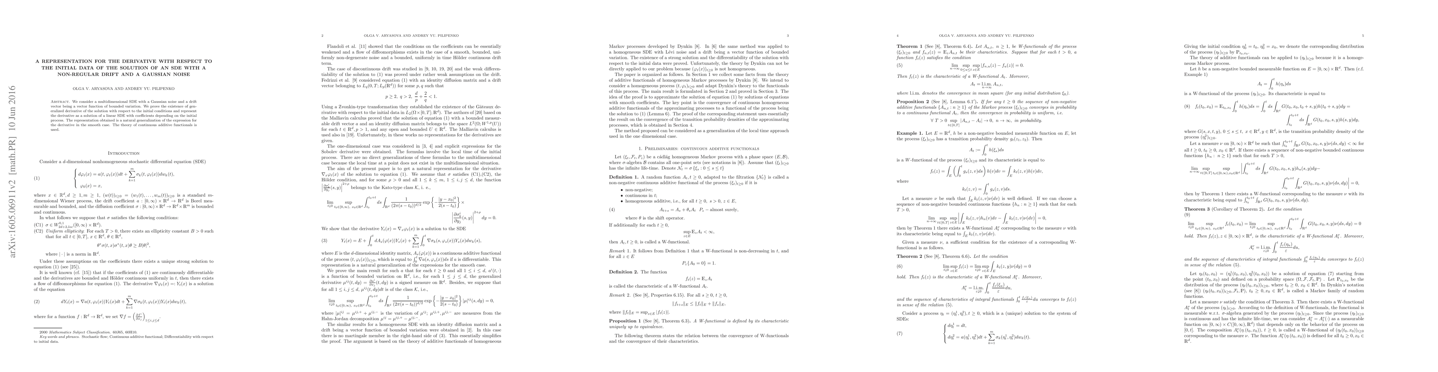 This paper presents a generalized derivative of the solution to a multidimensional stochastic differential equation (SDE) with a Gaussian noise and a non-regular drift. The authors prove the existence of this derivative and represent it as a solution to a linear SDE, extending the smooth case derivative expression using continuous additive functionals theory.
