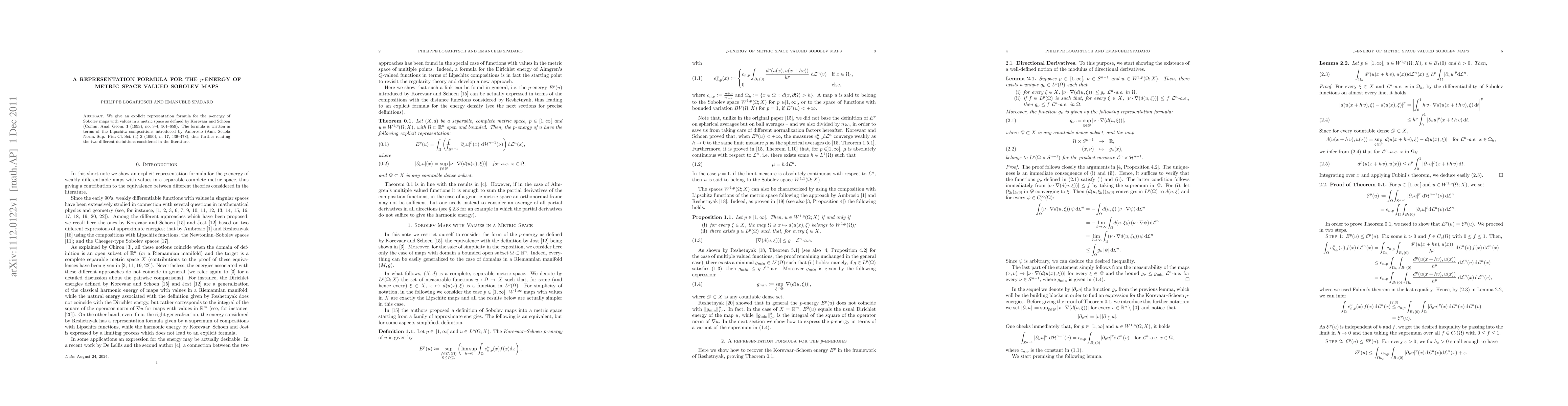 The paper presents a representation formula for the p-energy of Sobolev maps with values in a metric space, utilizing Lipschitz compositions as defined by Ambrosio.