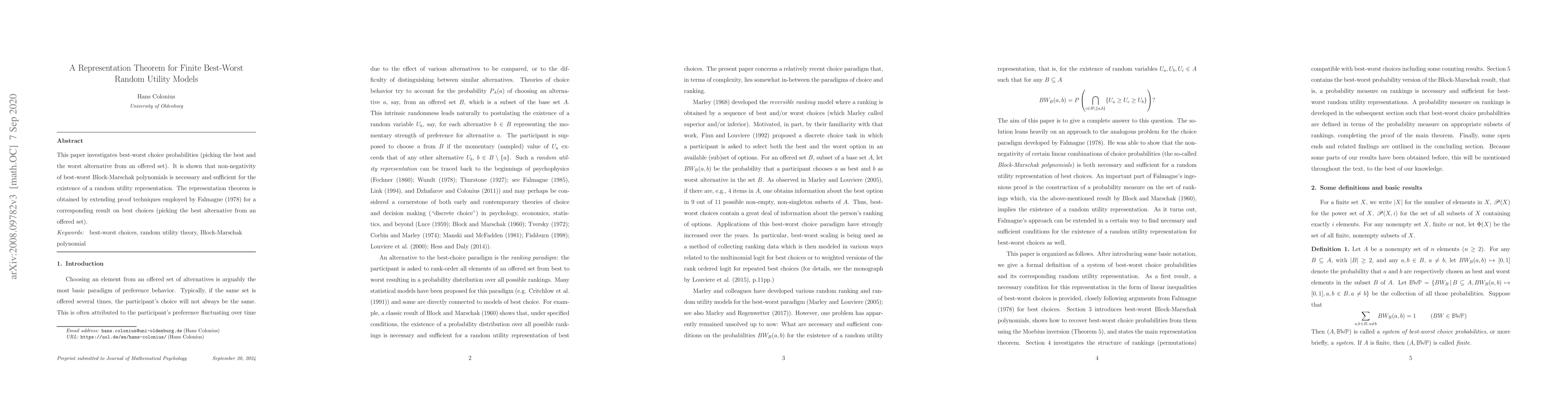 A new representation theorem for best-worst choice probabilities shows non-negativity of Block-Marschak polynomials is necessary and sufficient for a random utility model's existence. This finding expands on earlier work on best choices and has implications for understanding human decision-making under uncertainty.